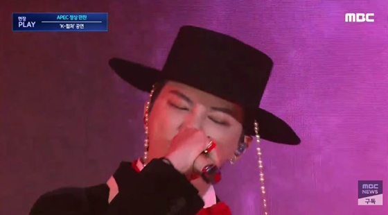 가수 지드래곤이 경주 APEC(아시아태평양경제협력체) 정상회의 환영 만찬에서 보여준 무대가 화제다.