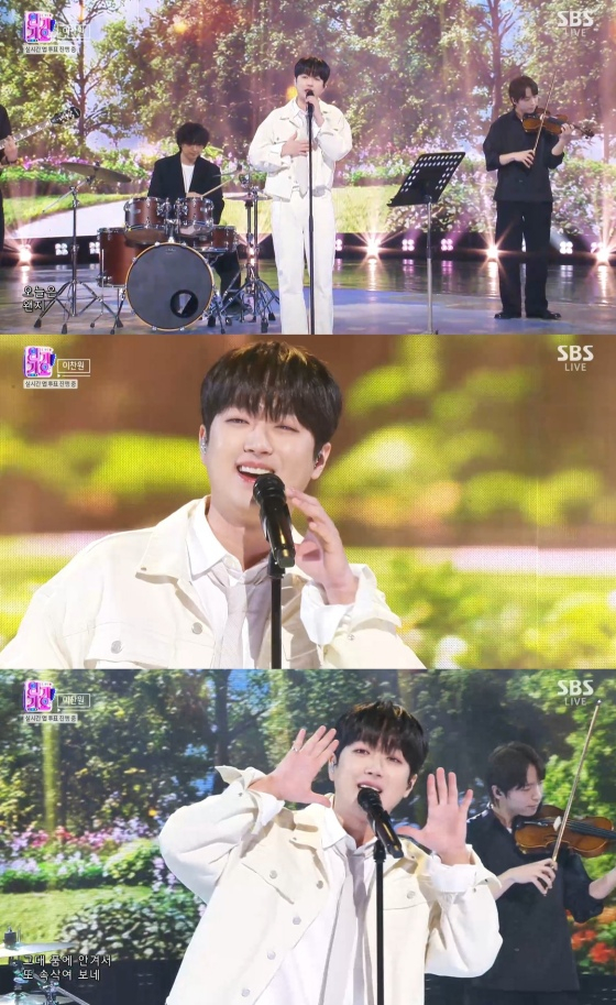 이찬원은 2일 오후 방송된 SBS '인기가요'에 출연해 정규 2집 '찬란(燦爛)'의 타이틀곡 '오늘은 왠지' 무대를 펼쳐 깊은 울림을 선사했다.