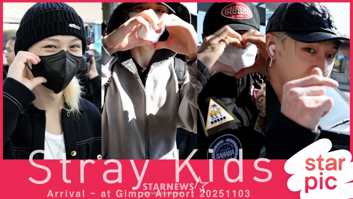 연예K-POP스트레이키즈 '수고했어요 스키즈!'[★영상]발행 : 2025.11.03 ・ 11:30조회수 :김포국제공항=임성균 기자그룹 스트레이키즈(Stray Kids) 방찬, 리노, 창빈, 현진, 한, 필릭스, 승민, 아이엔이 중국 일정을 마치고 3일 오전 김포국제공항을 통해 입국하고 있다. 2025.11.03<저작권자 © 스타뉴스, 무단전재 및 재배포 금지>브리핑추천 기사임성균 기자기자홈좋아요연예-K-POP의 인기 급상승 뉴스연예-K-POP의 최신 뉴스AD