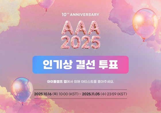 '10주년 아시아 아티스트 어워즈 2025'(10th Asia Artist Awards 2025, 10주년 AAA 2025)의 인기상 투표가 엠비씨플러스(MBC PLUS)와 모바일 광고 플랫폼 기업 티앤케이팩토리(TNK Factory)가 공동 사업 중인 모바일 아이돌 팬덤 어플리케이션 '아이돌챔프'에서 시작됐다.