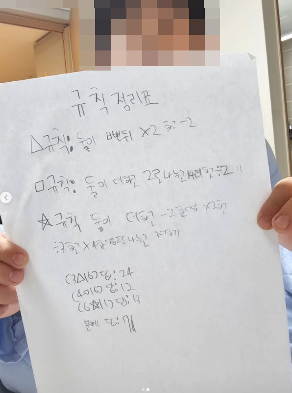 사진 속에는 이지현의 아들이 자신만의 수학 규칙 정리표를 만들어낸 모습이었다.