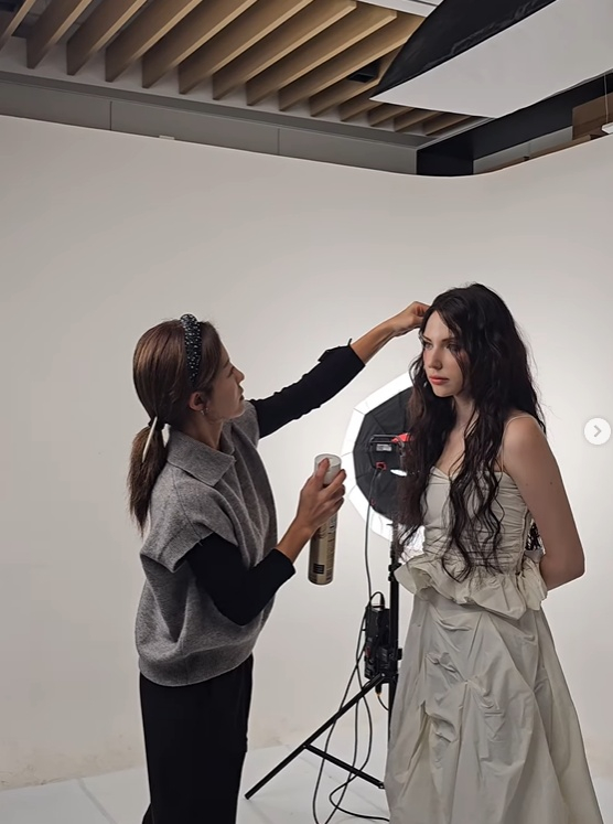 그는 "컷은 롱 레이어드로 실루엣이 자연스럽게 떨어지도록 구성했고, 컬은 여유 있는 S-웨이브를 적용해 히피 무드 속에서도 부드럽고 사랑스러운 결감이 드러나도록 했어요. 단아의 사랑스러움과 헤어스타일이 찰떡이라 만족만족 했어요"라고 덧붙였다.