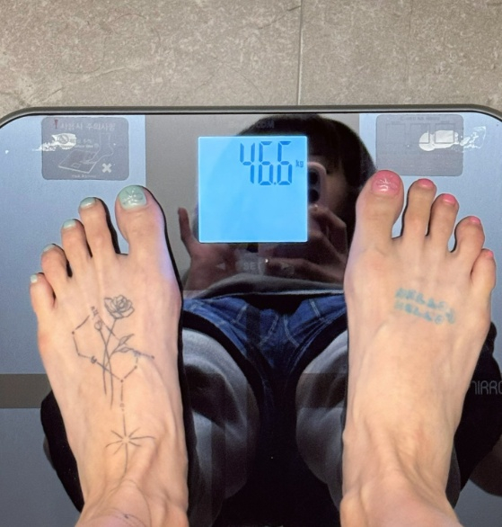 이후 현아는 지난 4일 "50 끝에서 앞자리 바꾸기까지 참 힘들다. 아직 멀었구나"라는 글과 함께 사진을 공개하며 약 10kg을 감량한 근황을 전했다. 그가 40kg대의 몸무게에 진입했다는 것. 키 161.8cm라고 밝혔던 현아는 지난해 6월 SNS에 46.6kg인 체중 인증샷을 공개하기도 했다.