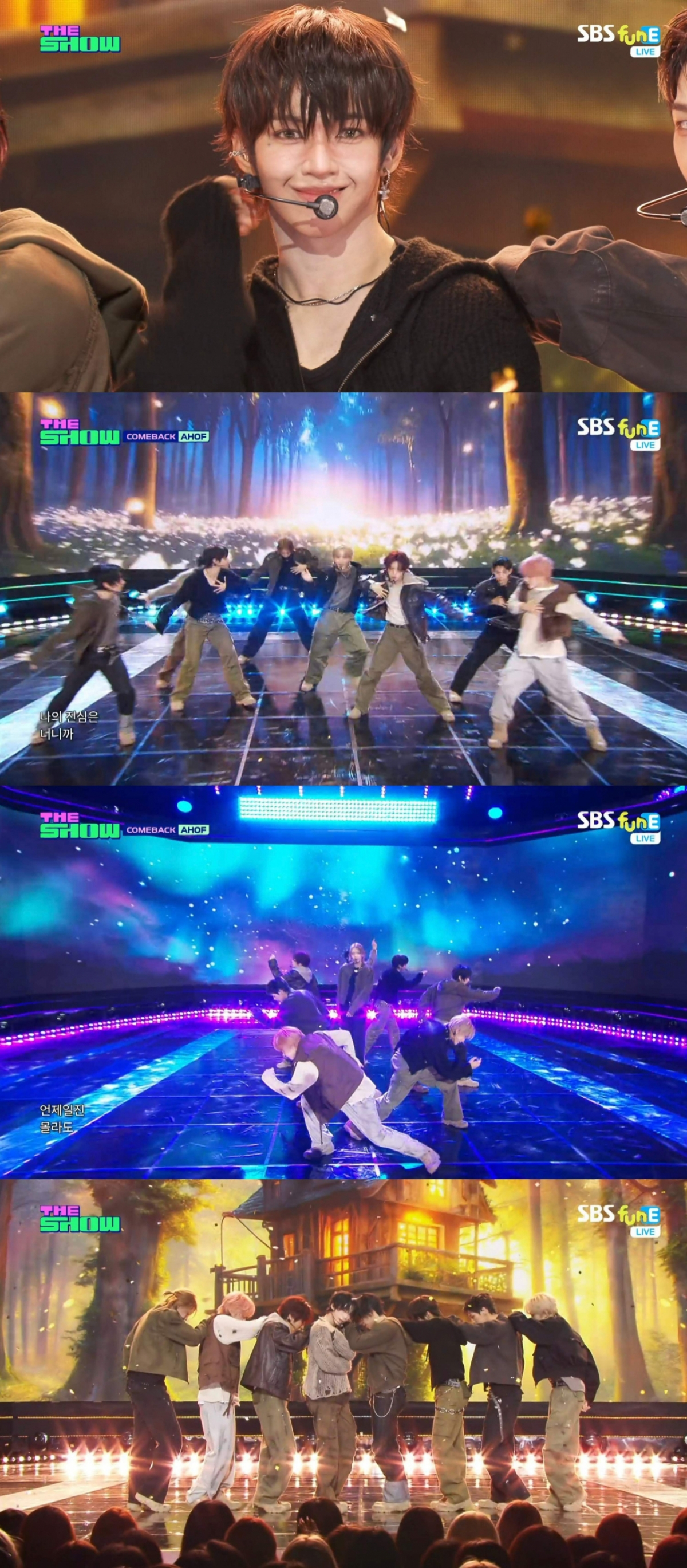 아홉(AHOF·스티븐, 서정우, 차웅기, 장슈아이보, 박한, 제이엘, 박주원, 즈언, 다이스케)은 11일 오후 방송된 SBS funE '더쇼'에 출연해 두 번째 미니앨범 'The Passage(더 패시지)'의 타이틀곡 '피노키오는 거짓말을 싫어해' 무대를 꾸몄다.