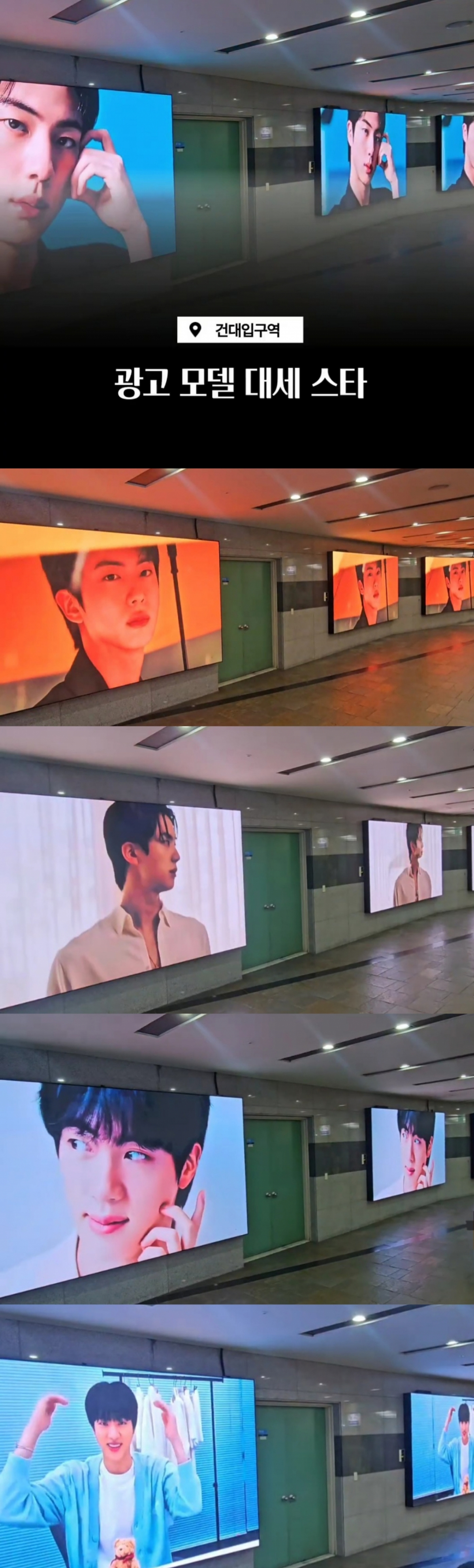 특히 '광고 모델 대세 스타' 1위 리워드로, 진의 전광판 광고가 11월 11일부터 11월 17일까지 서울 건대입구역 파노라마 3면 전광판에서 송출돼 팬들의 눈길을 사로잡고 있다.
