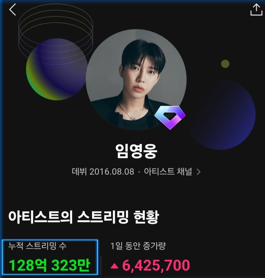 임영웅은 11월 17일 국내 주요 음원 플랫폼 멜론(Melon)에서 누적 스트리밍 128억 회를 넘어섰다. 이날 기준 임영웅의 멜론 누적 스트리밍 수는 128억 323만 회였다.