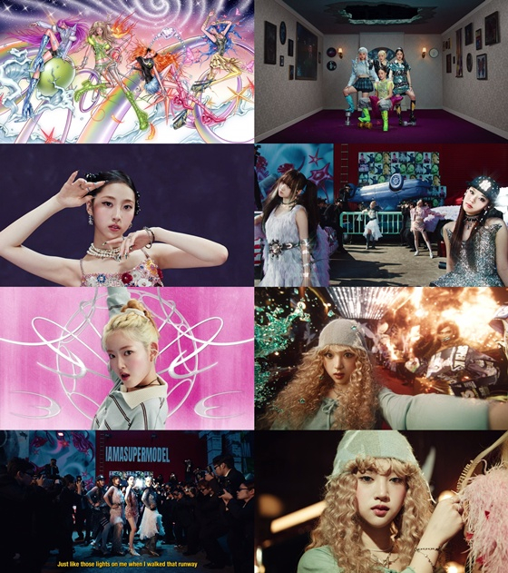'슈퍼 모델' 뮤직비디오는 한 편의 애니메이션을 보는 듯한 재미를 더했다. 현실과 환상을 넘나드는 판타지 속 네 멤버가 치열한 경쟁 끝에 슈퍼 모델이 되기까지의 서사를 펼쳐냈다. 특히 역동적인 화면 전환과 SF, 히어로물 애니메이션 느낌의 묘한 스타일이 연출돼 몰입감을 한층 끌어올렸다.