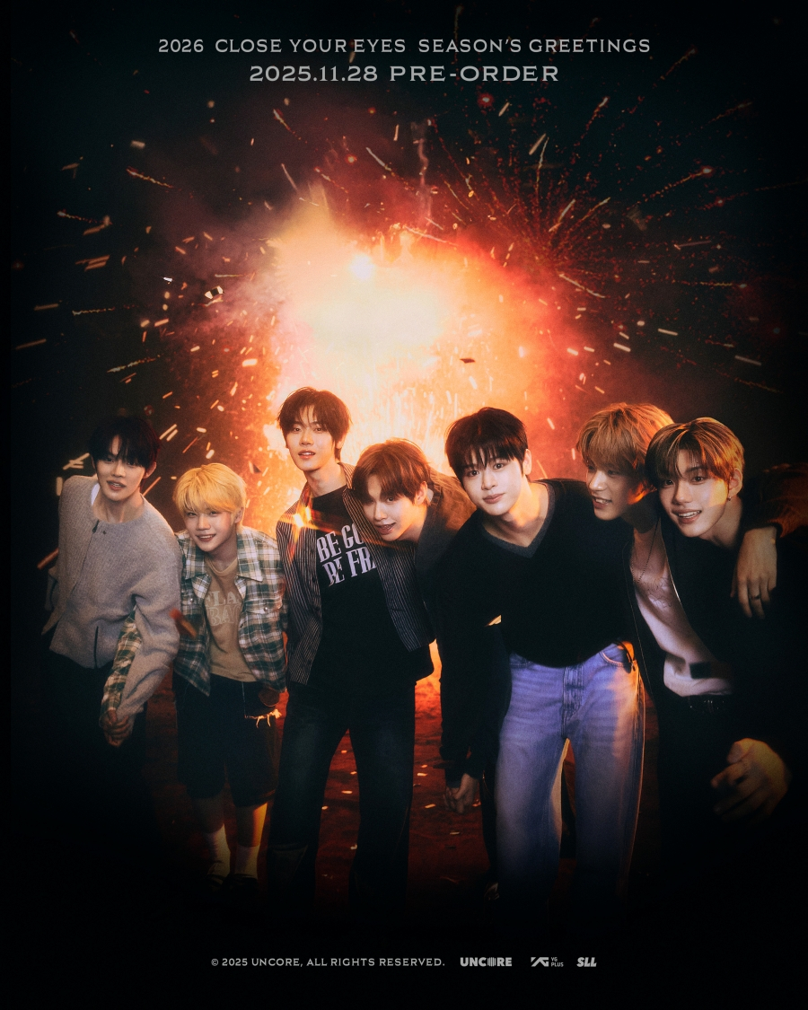 소속사 언코어는 지난 21일 공식 SNS를 통해 클로즈 유어 아이즈(전민욱, 마징시앙, 장여준, 김성민, 송승호, 켄신, 서경배)의 2026 시즌 그리팅 메인 포스터를 공개했다.
