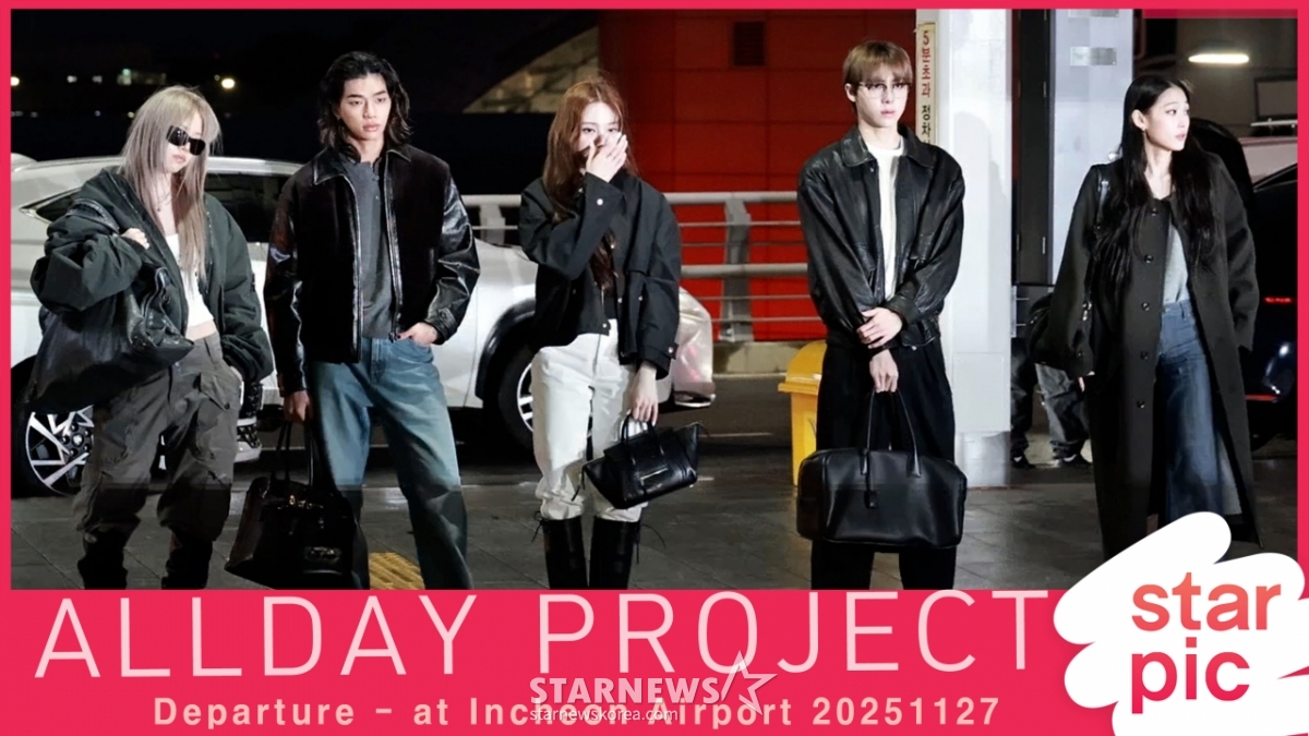 연예K-POP올데이프로젝트 '차분하게 검정패션으로!' [★영상]발행 : 2025.11.27 ・ 08:33인천국제공항=임성균 기자그룹 올데이프로젝트(ALLDAY PROJECT) 애니, 타잔, 베일리, 영서, 우찬이 홍콩에서 열리는 '2025 MAMA AWARDS' 참석 차 26일 오전 인천국제공항을 통해 출국하고 있다. 2025.11.27<저작권자 © 스타뉴스, 무단전재 및 재배포 금지>공항패션출국올데프올데이프로젝트애니타잔추천 기사임성균 기자기자홈좋아요 연예-K-POP의 인기 급상승 뉴스연예-K-POP의 최신 뉴스