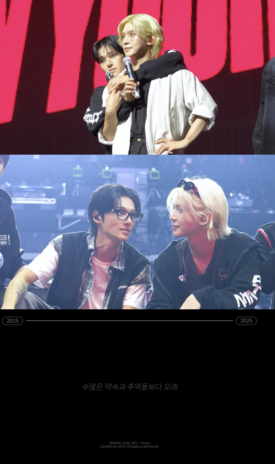 여상과 우영은 1일 에이티즈 공식 유튜브 채널을 통해 방탄소년단의 '친구' 커버 영상을 공개했다.