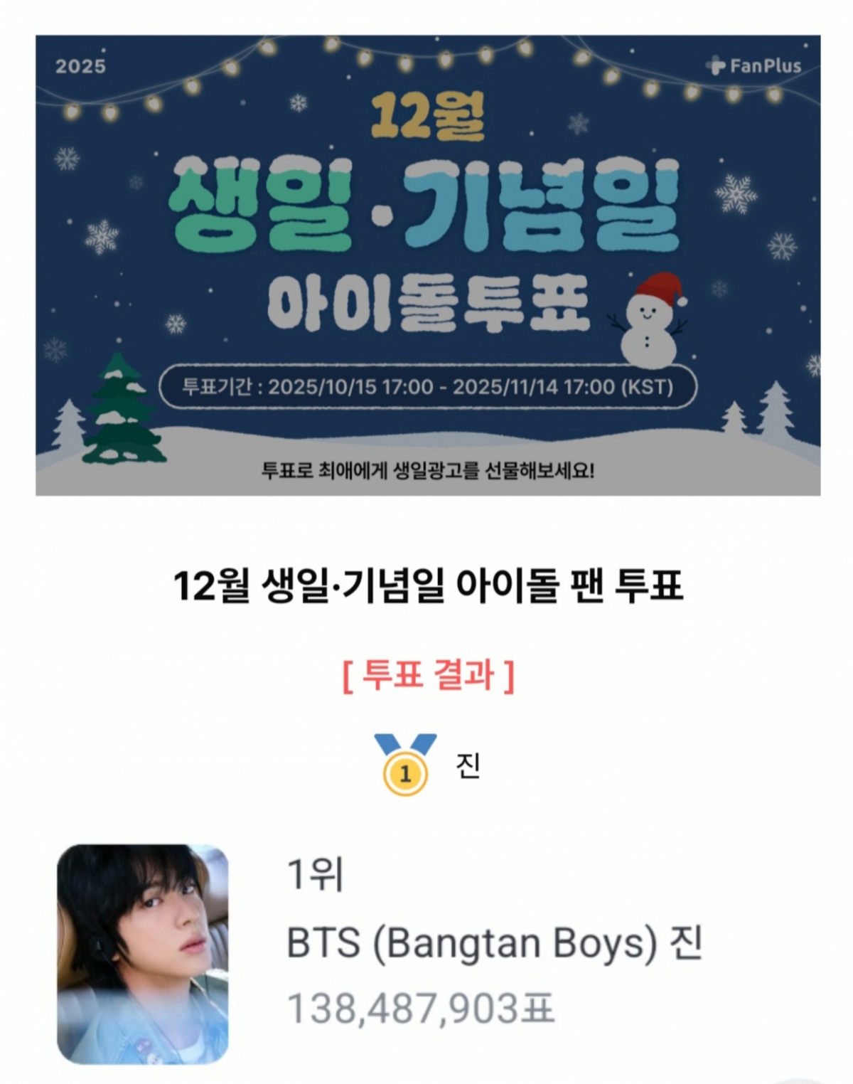 이번 12월, 팬들은 진의 생일과 영화 개봉을 함께 축하하며 오래도록 기억에 남을 특별한 연말을 맞이하게 될 것으로 기대된다.