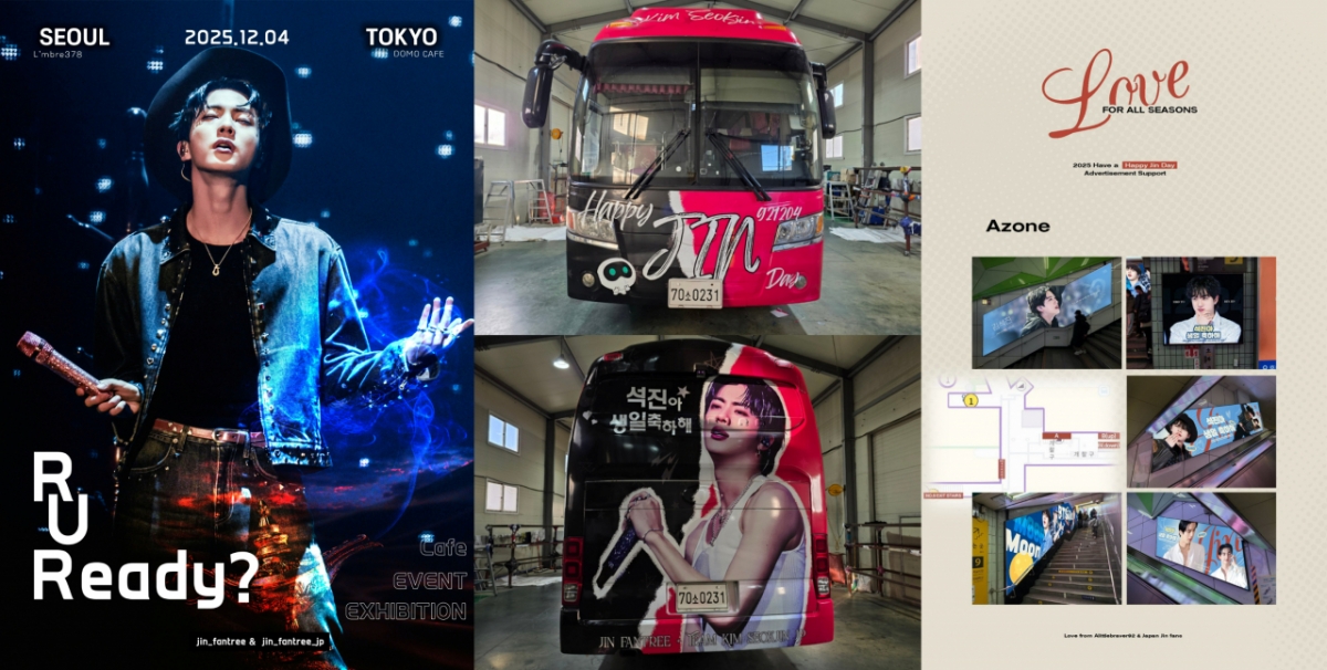 올해도 세계 곳곳의 팬들은 저마다의 방식으로 진의 이름을 밝히며 12월을 따뜻하게 채웠다. 도시의 스크린과 작은 카페, 그리고 문화유산의 한가운데까지 이어진 축하 프로젝트들은 단순한 팬 활동을 넘어 하나의 연말 풍경처럼 자리했다. 글로벌 스타 진을 향한 마음은 매년 새로운 형태로 확장되고, 그 안에서 탄생한 독창적인 아이디어와 나눔의 실천은 다시 한 번 많은 이들에게 선한 영향력을 전했다. 그렇게 12월 4일은 팬들과 아티스트를 잇는 특별한 하루로, 그리고 한 해의 끝을 포근하게 감싸는 또 하나의 장면으로 남았다.