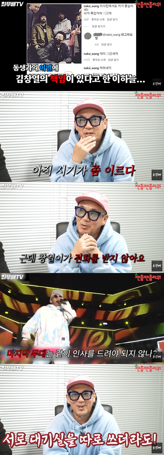 비보가 전해진 직후, 이하늘은 물론 김창열과 정재용 등은 제주도로 향했었고, 시점상 이하늘이 인스타그램 라이브를 하기 직전까지도 두 사람은 함께 식사를 하면서 이야기를 나눴던 것으로 보인다. 결과적으로 이하늘이 김창열을 저격하면서 파장이 커졌지만, 비보 때문만은 아니더라도 애증의 관계였던 둘 사이에 보이지 않았던, 그리고 그럼에도 서로를 위해 안고 가며 덮어뒀던 앙금은 터질 준비를 하고 있었던 모양이다. 당시 관계자는 스타뉴스에 "둘 사이에 갈등은 워낙 컸다. 이것 말고도 얽힌 문제가 사실 너무 많다"며 "안타깝다. 그저 잘 해결되길 바랄 뿐"이라고 전했다.