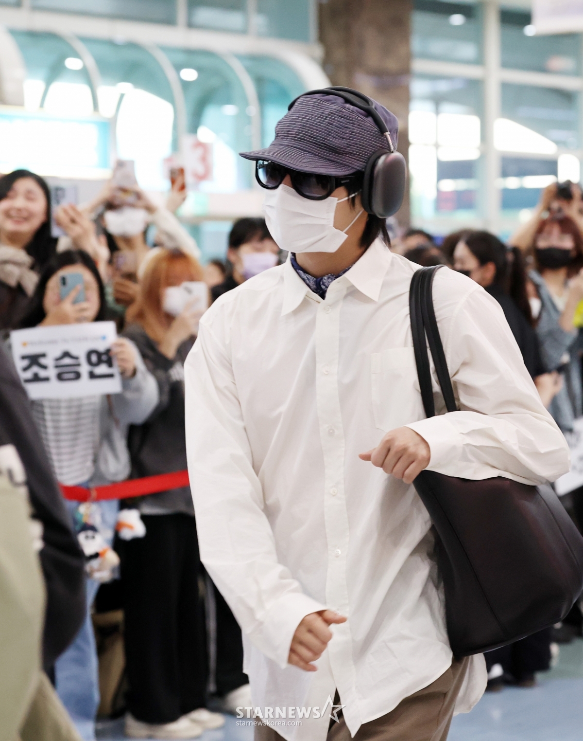 가수 우즈가 대만 가오슝에서 열리는'10주년 아시아 아티스트 어워즈 2025(10th Anniversary Asia Artist Awards 2025, '10주년 AAA 2025') 참석을 위해 대만 가오슝 국제공항을 통해 입국하고 있다.