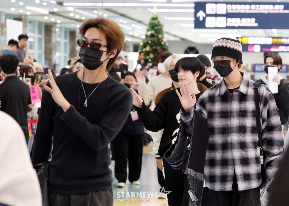 그룹 크래비티가 대만 가오슝에서 열리는'10주년 아시아 아티스트 어워즈 2025(10th Anniversary Asia Artist Awards 2025, '10주년 AAA 2025') 참석을 위해 대만 가오슝 국제공항을 통해 입국하고 있다.