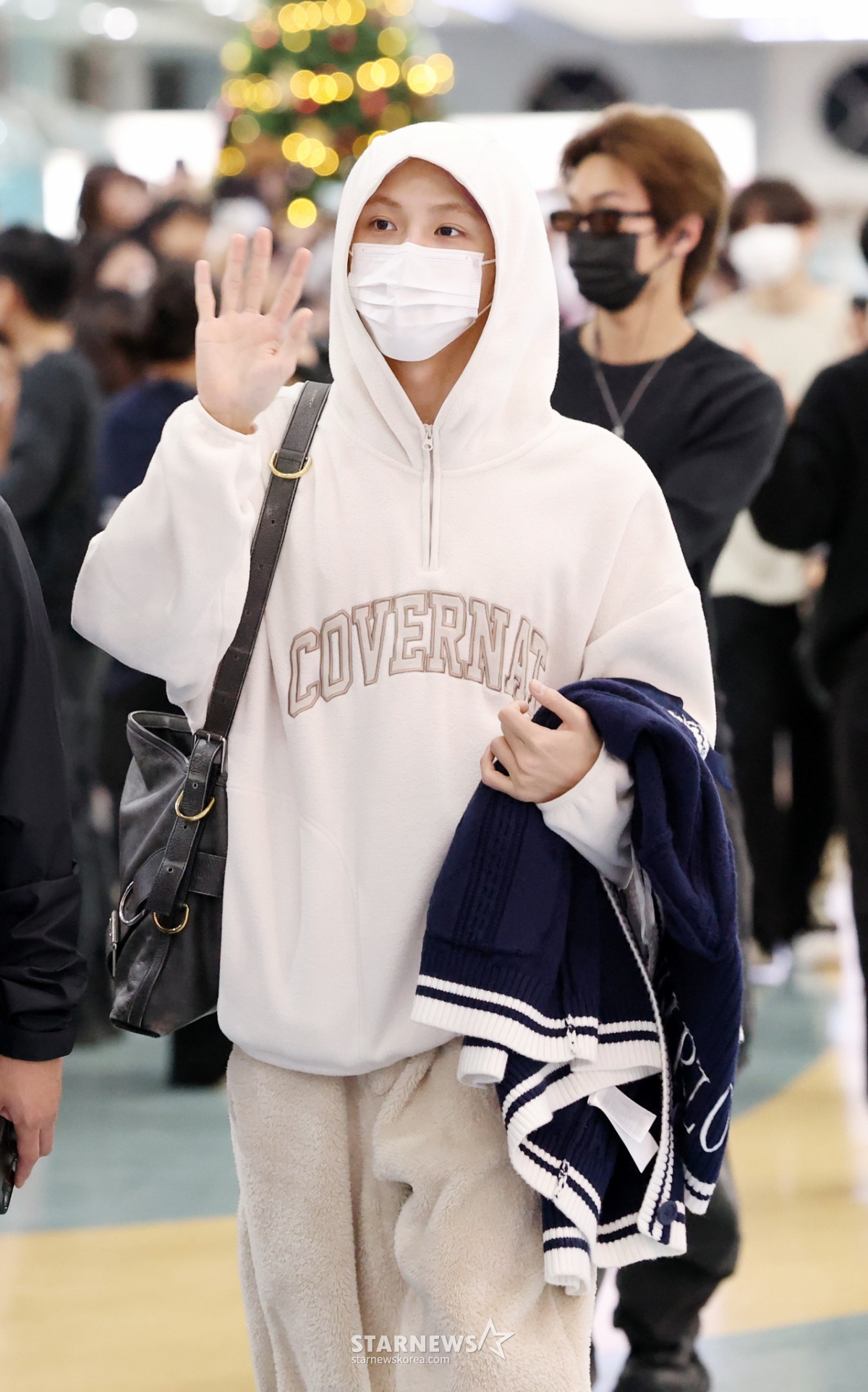 그룹 크래비티 성민이 대만 가오슝에서 열리는'10주년 아시아 아티스트 어워즈 2025(10th Anniversary Asia Artist Awards 2025, '10주년 AAA 2025') 참석을 위해 대만 가오슝 국제공항을 통해 입국하고 있다.