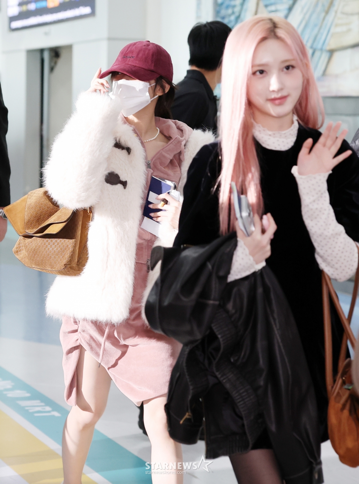 그룹 아이브 이서, 가을이 대만 가오슝에서 스타뉴스 주최로 열리는'10주년 아시아 아티스트 어워즈 2025(10th Anniversary Asia Artist Awards 2025, '10주년 AAA 2025') 참석을 위해 5일 대만 가오슝 국제공항을 통해 입국하고 있다.