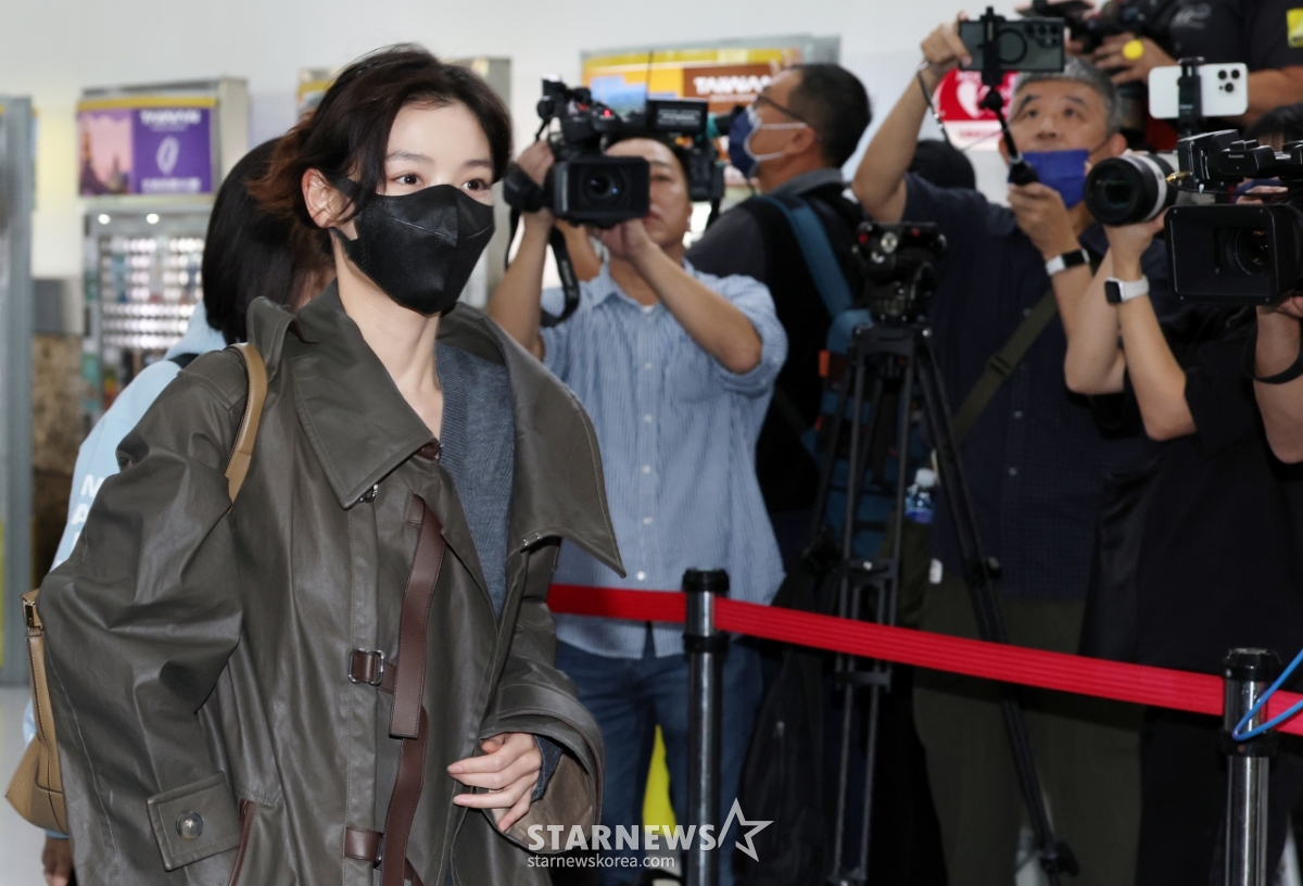 배우 김유정이 대만 가오슝에서 스타뉴스 주최로 열리는'10주년 아시아 아티스트 어워즈 2025(10th Anniversary Asia Artist Awards 2025, '10주년 AAA 2025') 참석을 위해 5일 대만 가오슝 국제공항을 통해 입국하고 있다.
