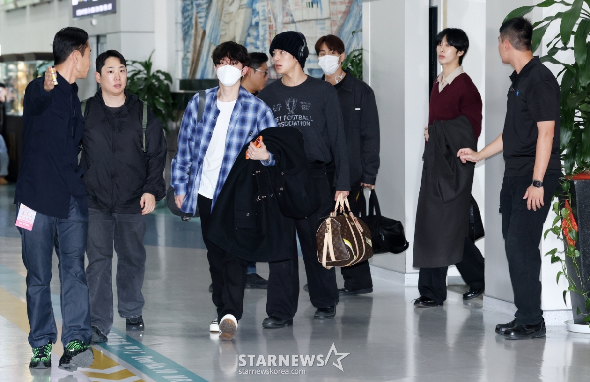 그룹 몬스타엑스가 대만 가오슝에서 스타뉴스 주최로 열리는'10주년 아시아 아티스트 어워즈 2025(10th Anniversary Asia Artist Awards 2025, '10주년 AAA 2025') 참석을 위해 5일 대만 가오슝 국제공항을 통해 입국하고 있다.
