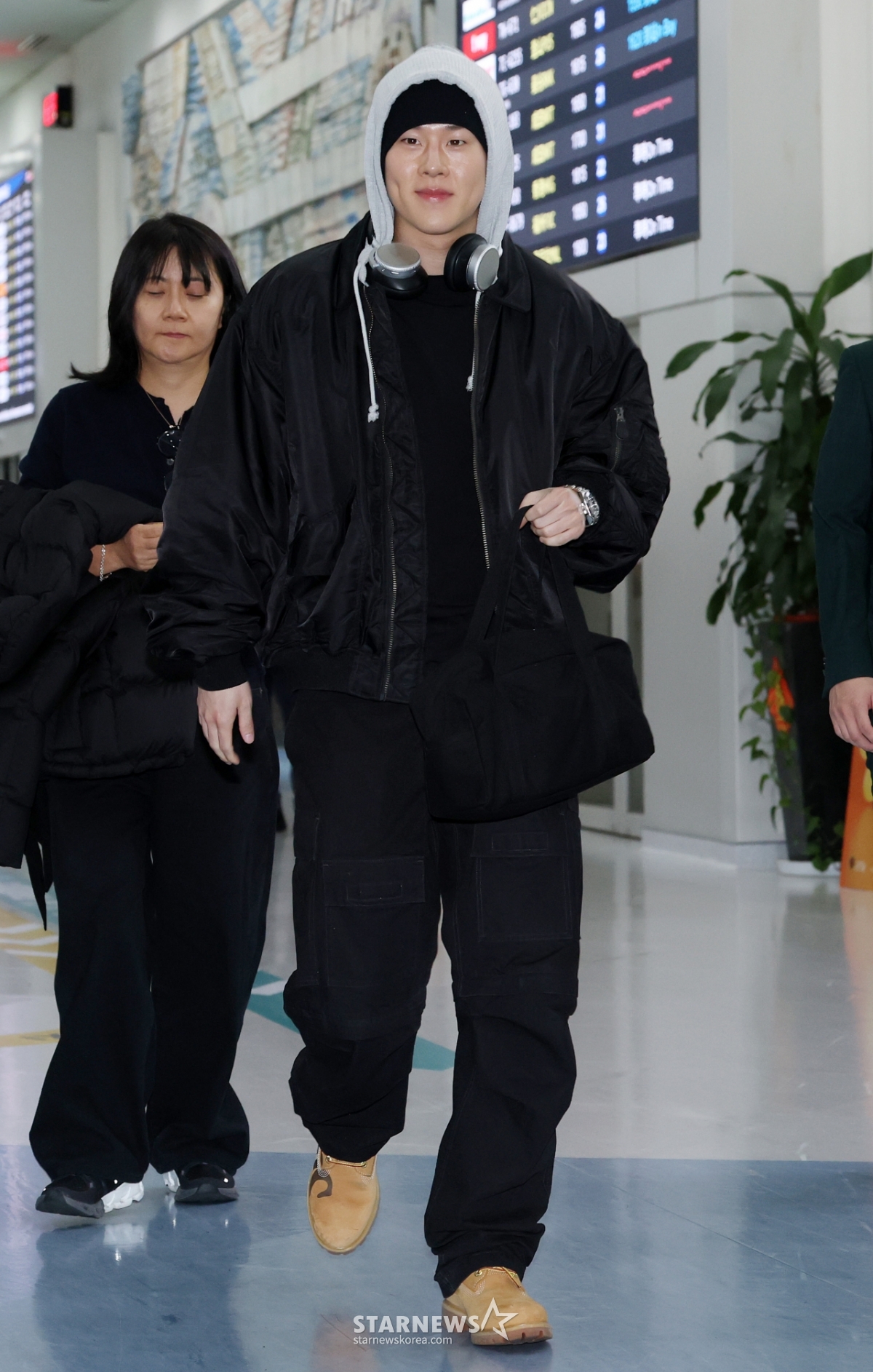 그룹 몬스타엑스 주헌이 대만 가오슝에서 스타뉴스 주최로 열리는'10주년 아시아 아티스트 어워즈 2025(10th Anniversary Asia Artist Awards 2025, '10주년 AAA 2025') 참석을 위해 5일 대만 가오슝 국제공항을 통해 입국하고 있다.