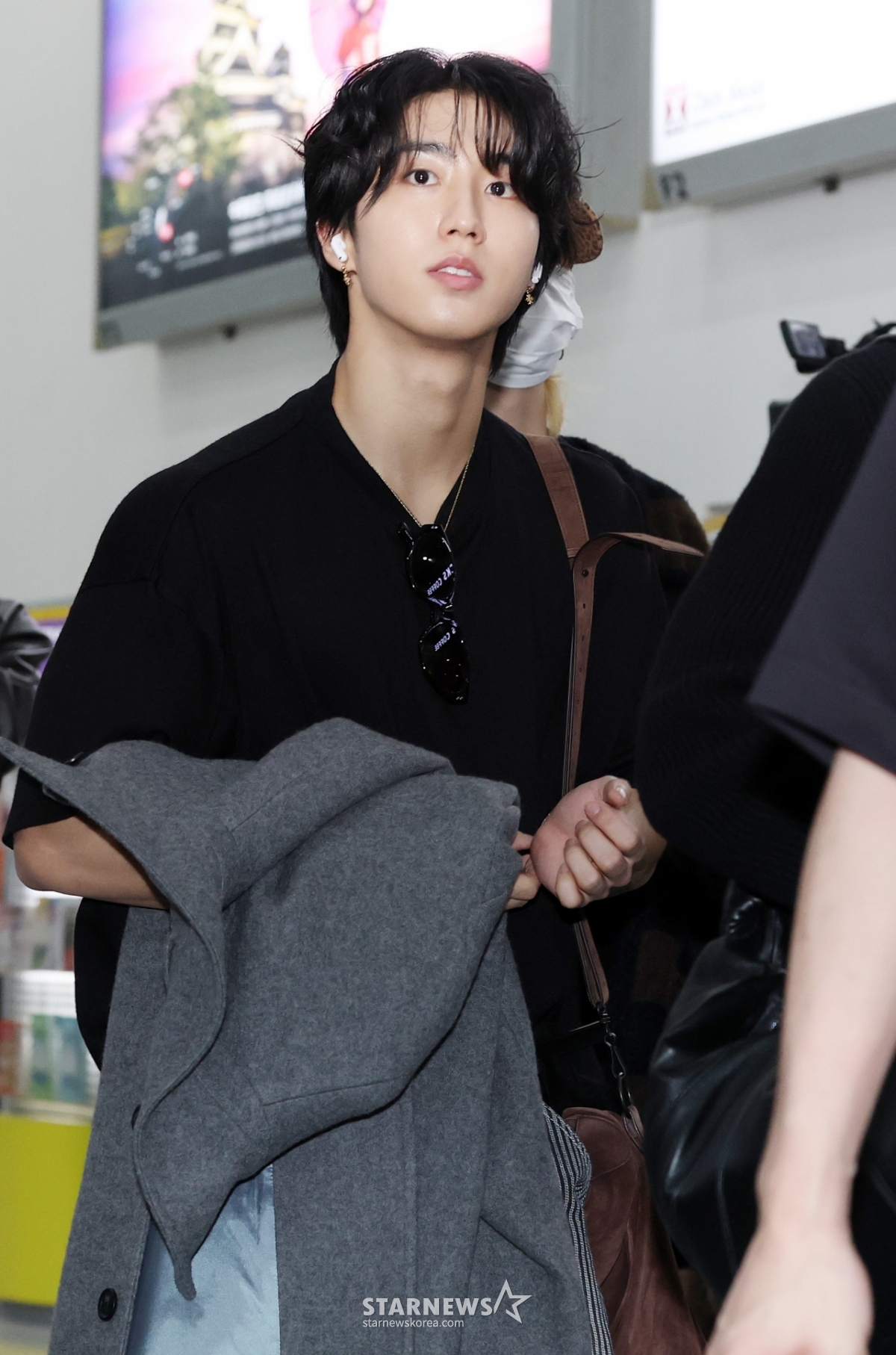 그룹 스트레이키즈 한이 대만 가오슝에서 스타뉴스 주최로 열리는'10주년 아시아 아티스트 어워즈 2025(10th Anniversary Asia Artist Awards 2025, '10주년 AAA 2025') 참석을 위해 5일 대만 가오슝 국제공항을 통해 입국하고 있다.
