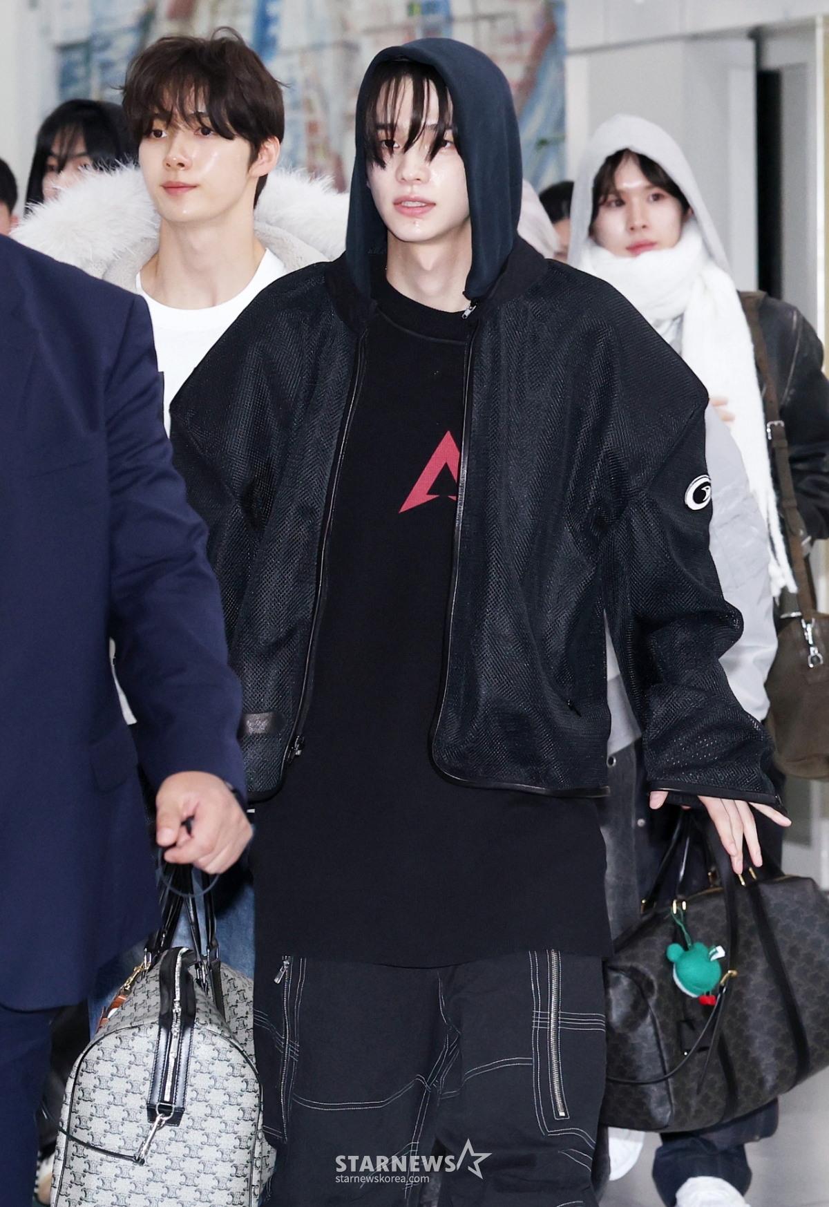 그룹 투어스 신유가 대만 가오슝에서 스타뉴스 주최로 열리는'10주년 아시아 아티스트 어워즈 2025(10th Anniversary Asia Artist Awards 2025, '10주년 AAA 2025') 참석을 위해 5일 대만 가오슝 국제공항을 통해 입국하고 있다.