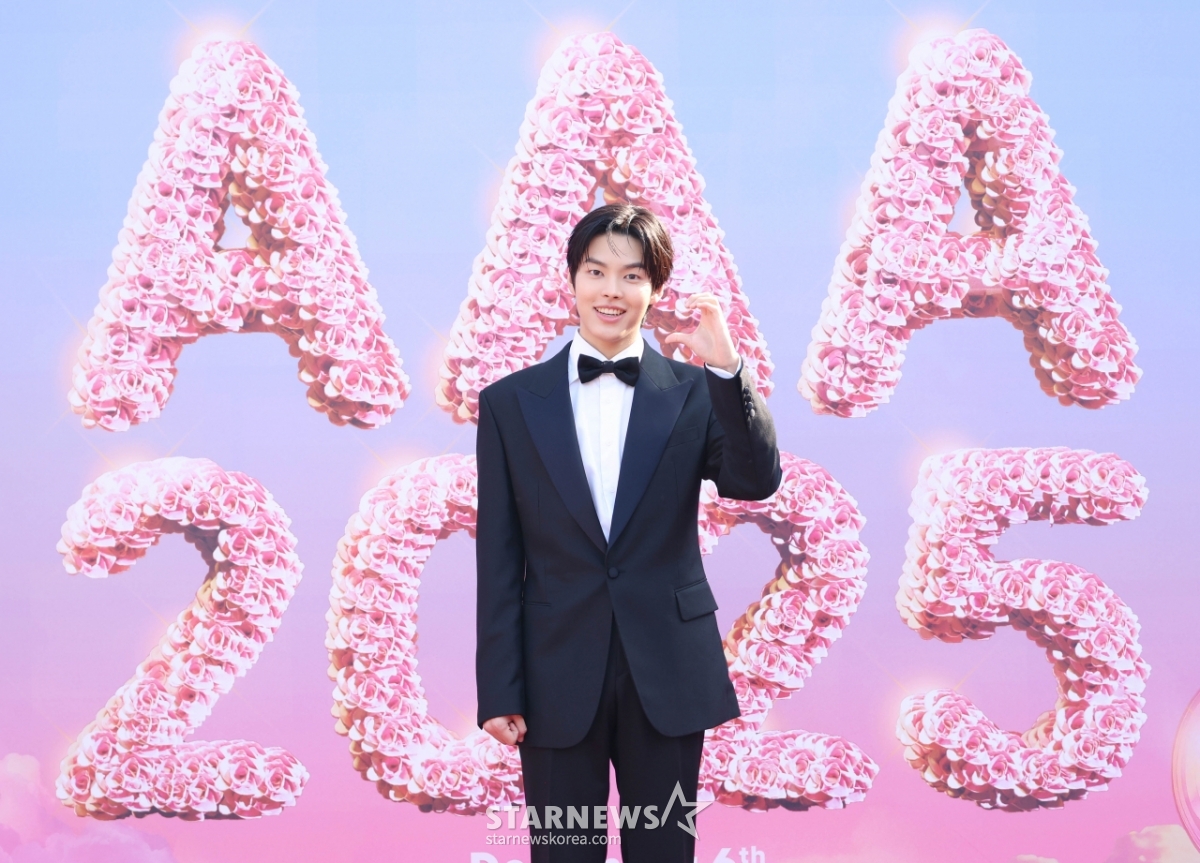 배우 박윤호가 6일 대만 가오슝 내셔널 스타디움에서 진행된 스타뉴스 주최 '10주년 아시아 아티스트 어워즈 2025(10th Anniversary Asia Artist Awards 2025, '10주년 AAA 2025') 레드카펫 행사에 참석해 포즈를 취하고 있다.
