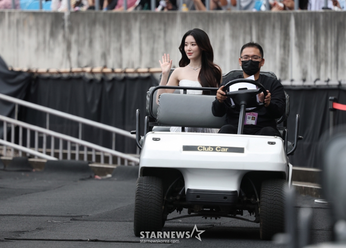 아이들 슈화가 6일 대만 가오슝 내셔널 스타디움에서 진행된 스타뉴스 주최 '10주년 아시아 아티스트 어워즈 2025(10th Anniversary Asia Artist Awards 2025, '10주년 AAA 2025')에서 버기카 세리머니를 하고 있다.