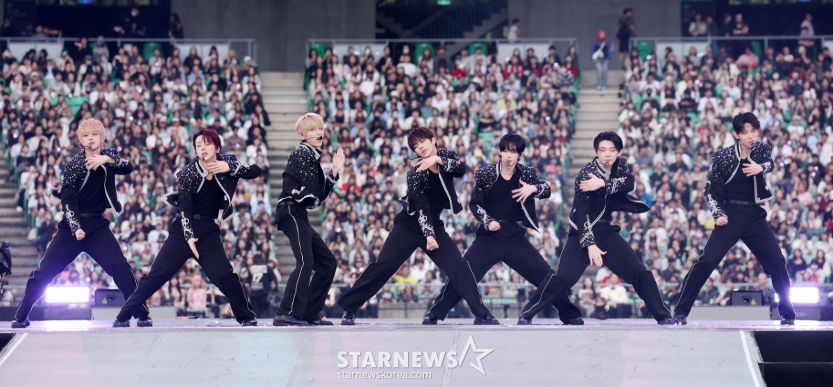 그룹 아홉이 6일 대만 가오슝 내셔널 스타디움에서 진행된 스타뉴스 주최 '10주년 아시아 아티스트 어워즈 2025(10th Anniversary Asia Artist Awards 2025, '10주년 AAA 2025')에서 멋진 무대를 선보이고 있다.