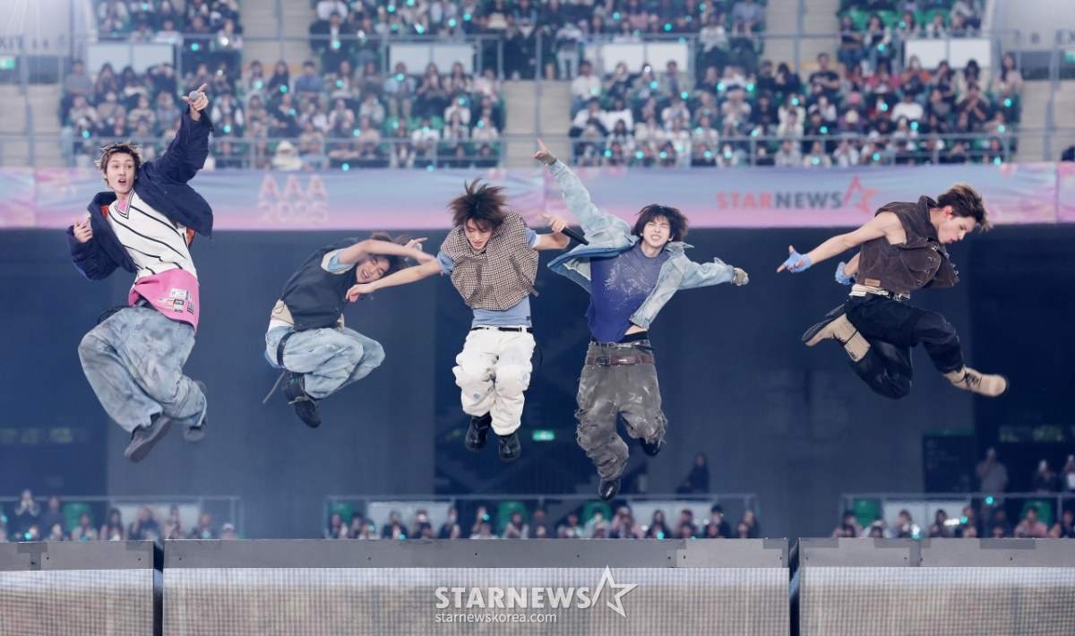 그룹 코르티스가 6일 대만 가오슝 내셔널 스타디움에서 진행된 스타뉴스 주최 '10주년 아시아 아티스트 어워즈 2025(10th Anniversary Asia Artist Awards 2025, '10주년 AAA 2025')에서 멋진 무대를 선보이고 있다.