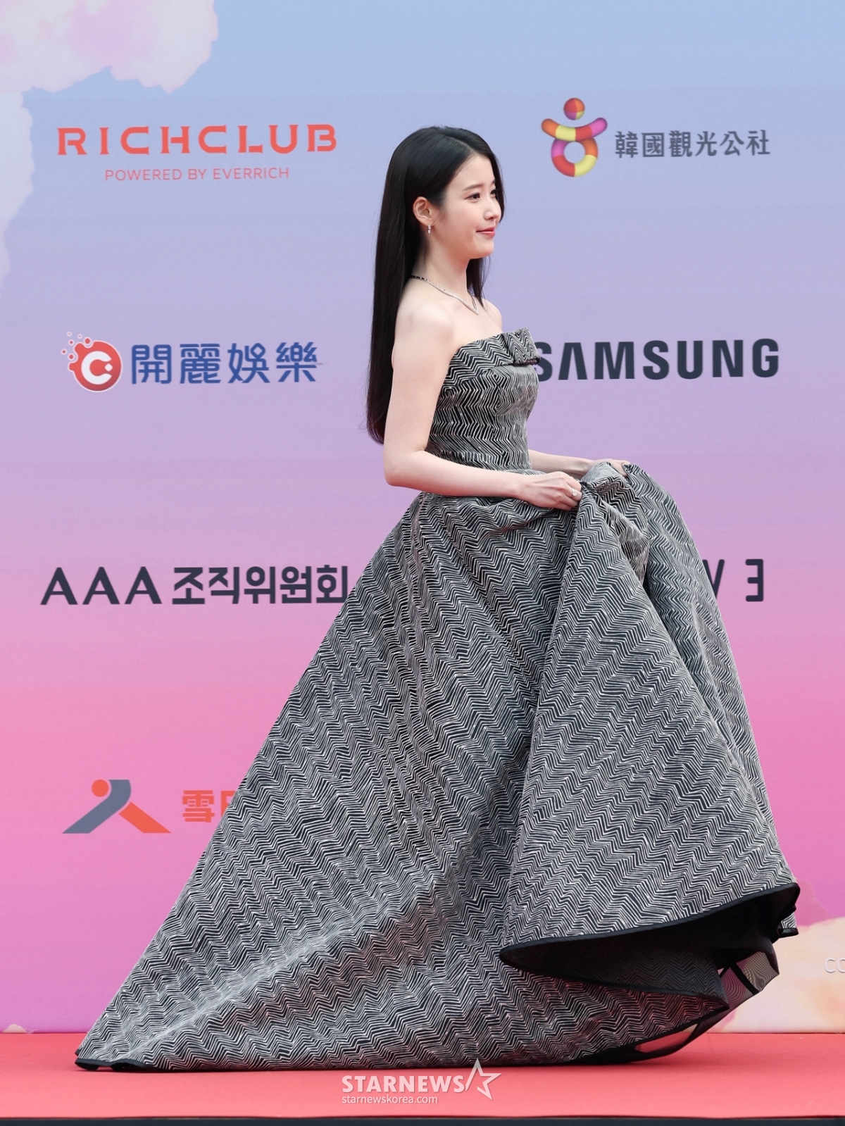 배우 아이유가 6일 가오슝 내셔널 스타디움에서 진행된 스타뉴스 주최 '10주년 아시아 아티스트 어워즈 2025(10th Anniversary Asia Artist Awards 2025, '10주년 AAA 2025') 레드카펫 행사에 참석해 포즈를 취하고 있다.