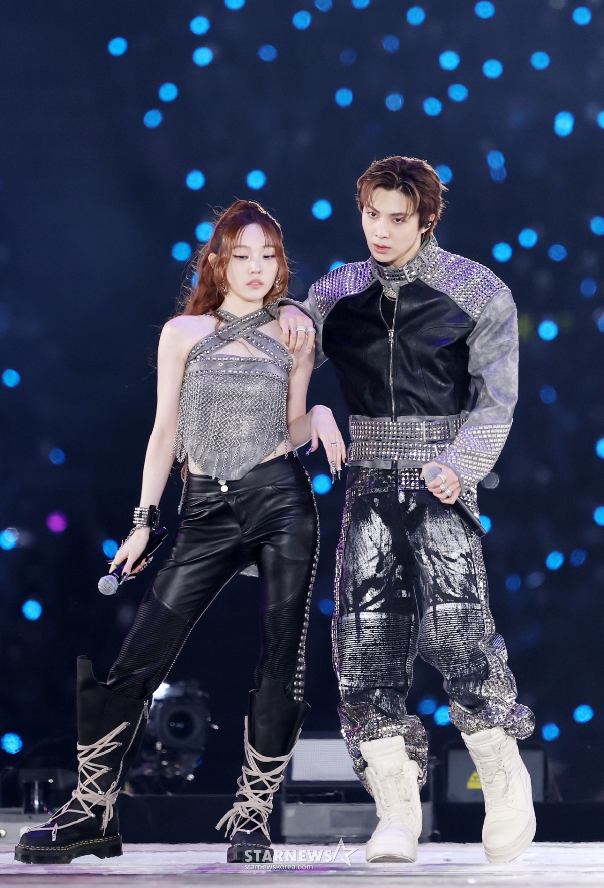 그룹 올데이프로젝트 영서, 우찬이 6일 대만 가오슝 내셔널 스타디움에서 진행된 스타뉴스 주최 '10주년 아시아 아티스트 어워즈 2025(10th Anniversary Asia Artist Awards 2025, '10주년 AAA 2025')에서 멋진 무대를 선보이고 있다.