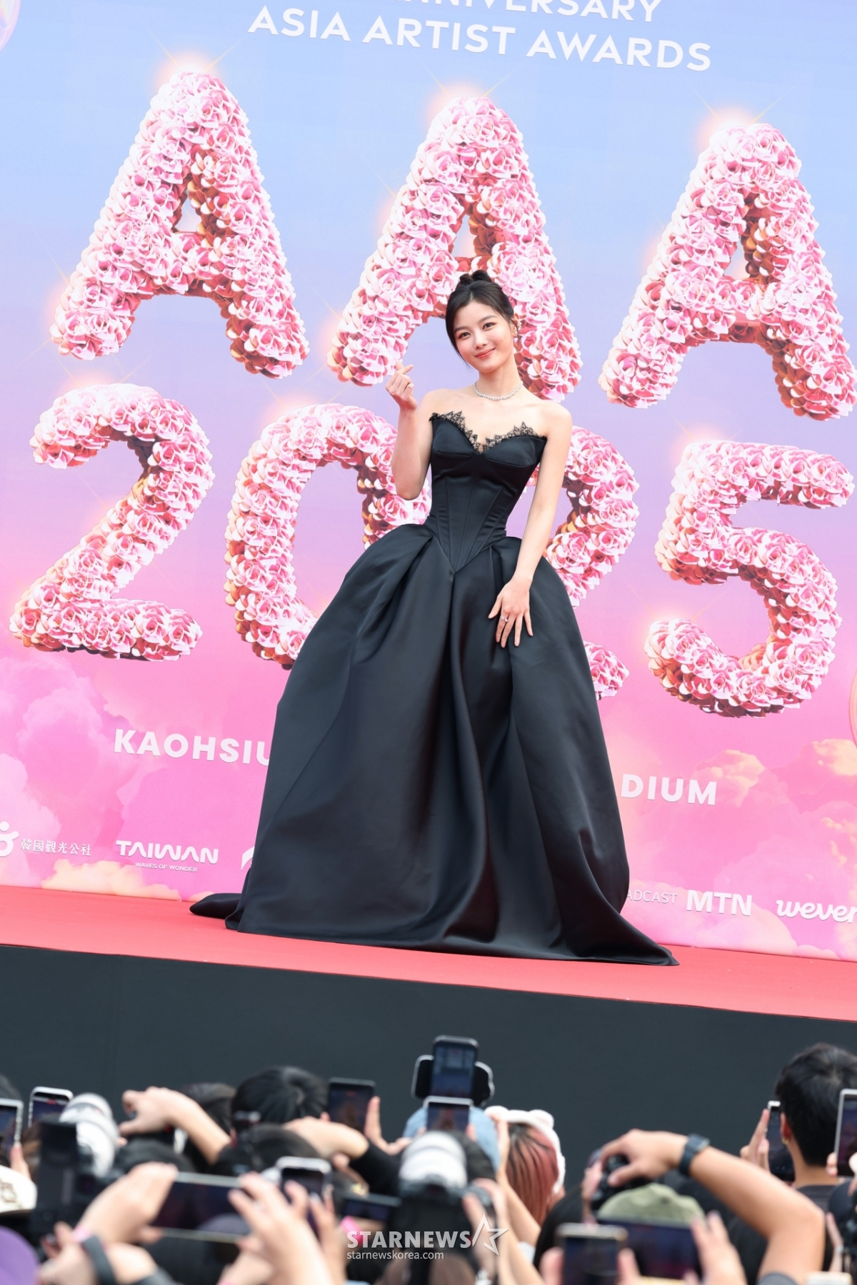 배우 김유정이 6일 가오슝 내셔널 스타디움에서 진행된 스타뉴스 주최 '10주년 아시아 아티스트 어워즈 2025(10th Anniversary Asia Artist Awards 2025, '10주년 AAA 2025') 레드카펫 행사에 참석해 포즈를 취하고 있다.