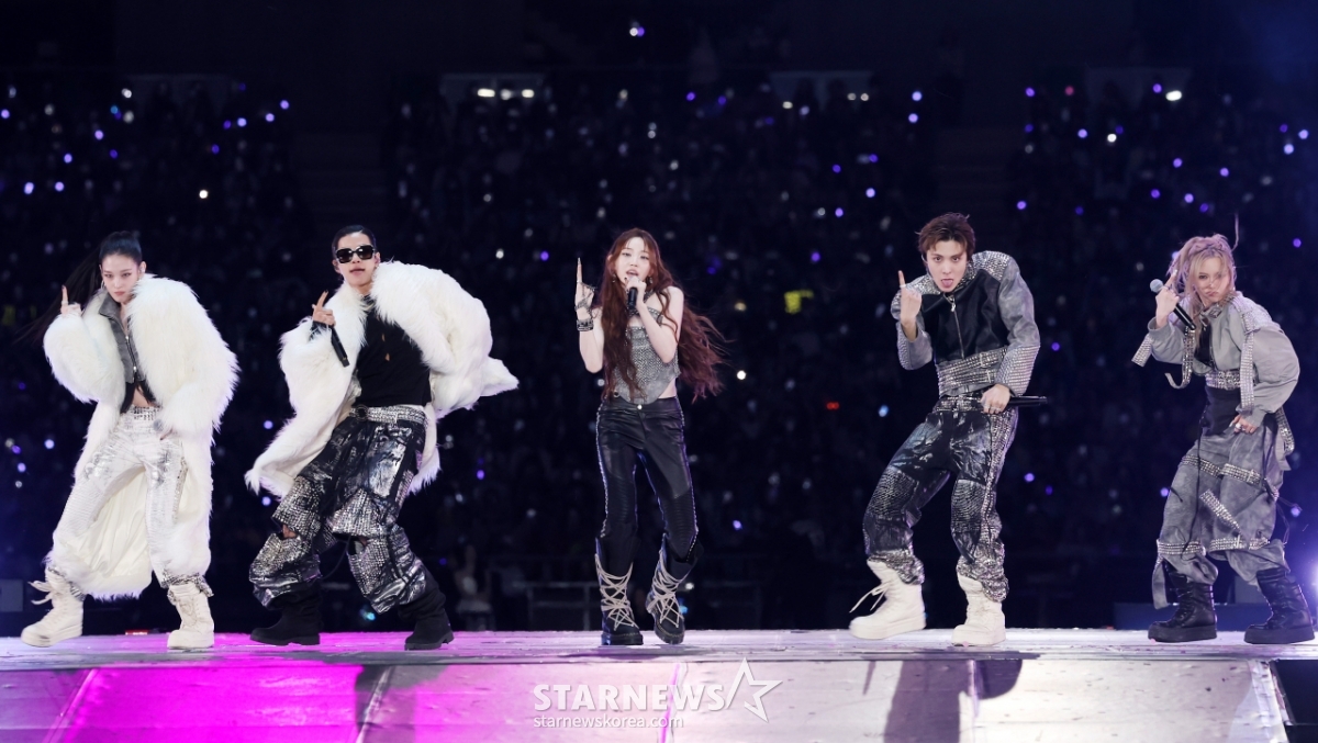 그룹 올데이프로젝트가 6일 대만 가오슝 내셔널 스타디움에서 진행된 스타뉴스 주최 '10주년 아시아 아티스트 어워즈 2025(10th Anniversary Asia Artist Awards 2025, '10주년 AAA 2025')에서 멋진 무대를 선보이고 있다.