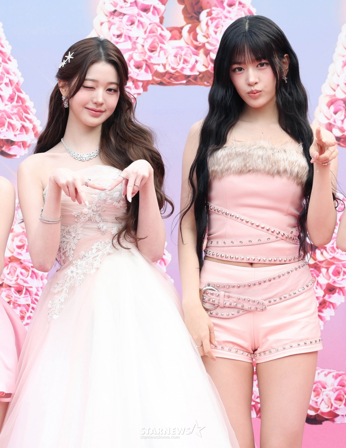 아이브 장원영, 안유진이 6일 가오슝 내셔널 스타디움에서 진행된 스타뉴스 주최 '10주년 아시아 아티스트 어워즈 2025(10th Anniversary Asia Artist Awards 2025, '10주년 AAA 2025') 레드카펫 행사에 참석해 포즈를 취하고 있다.