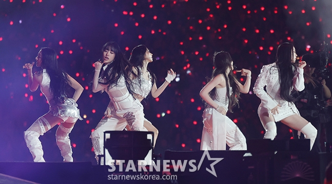 미야오(MEOVV)가 6일 가오슝 내셔널 스타디움에서 진행된 스타뉴스 주최 '10주년 아시아 아티스트 어워즈 2025(10th Anniversary Asia Artist Awards 2025, '10주년 AAA 2025')에서 축하 무대를 선보이고 있다.