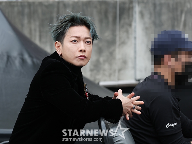 사토 타케루가 6일 가오슝 내셔널 스타디움에서 진행된 스타뉴스 주최 '10주년 아시아 아티스트 어워즈 2025(10th Anniversary Asia Artist Awards 2025, '10주년 AAA 2025')에서 버기카 세리머니를 하고 있다.