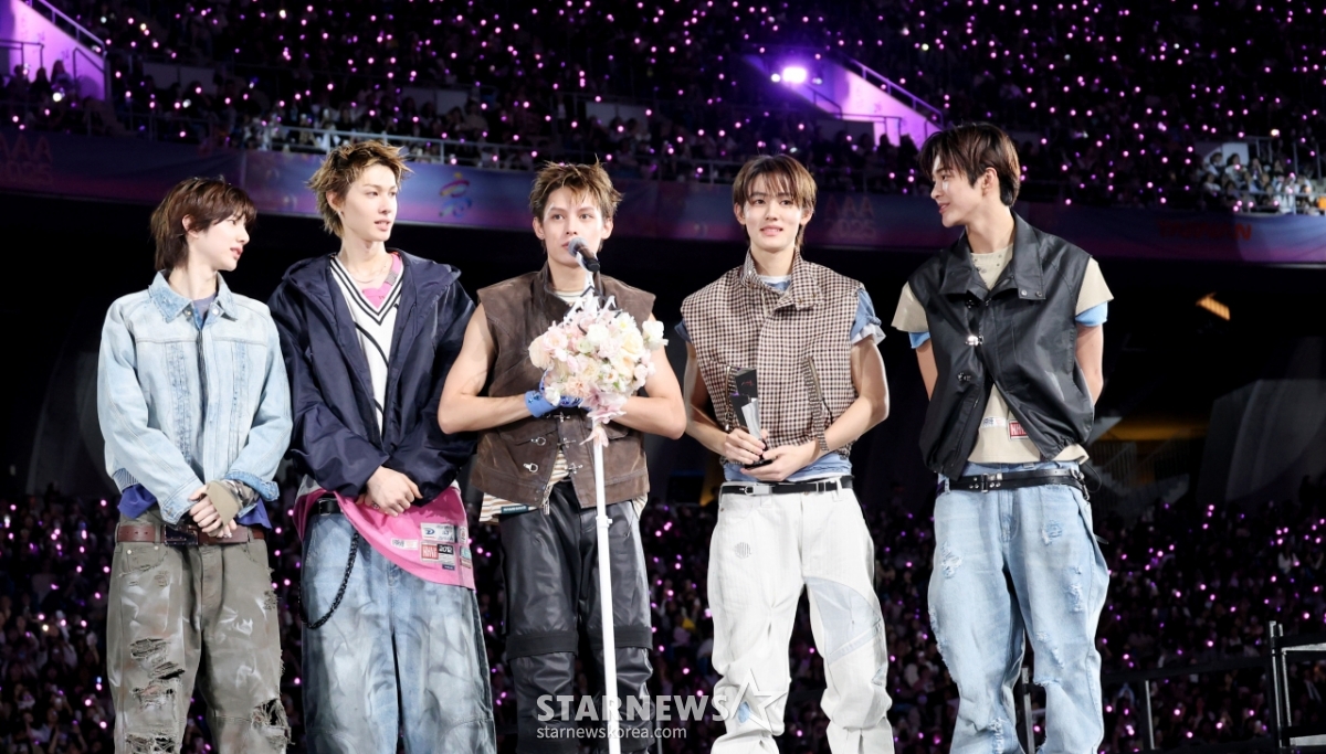 AAA 베스트 퍼포먼스상 코르티스가 6일 대만 가오슝 내셔널 스타디움에서 진행된 스타뉴스 주최 '10주년 아시아 아티스트 어워즈 2025(10th Anniversary Asia Artist Awards 2025, '10주년 AAA 2025')에서 수상소감을 전하고 있다. 12월 6일~7일 양일에 걸쳐 가오슝 내셔널 스타디움에서 펼쳐지는 '10주년 아시아 아티스트 어워즈 2025(10th Anniversary Asia Artist Awards 2025, '10주년 AAA 2025')'와 페스타 'ACON 2025'는 MTN(머니투데이방송)과 위버스(Weverse)를 통해 각각 TV와 온라인 스트리밍으로 생중계 된다. 2025.12.06