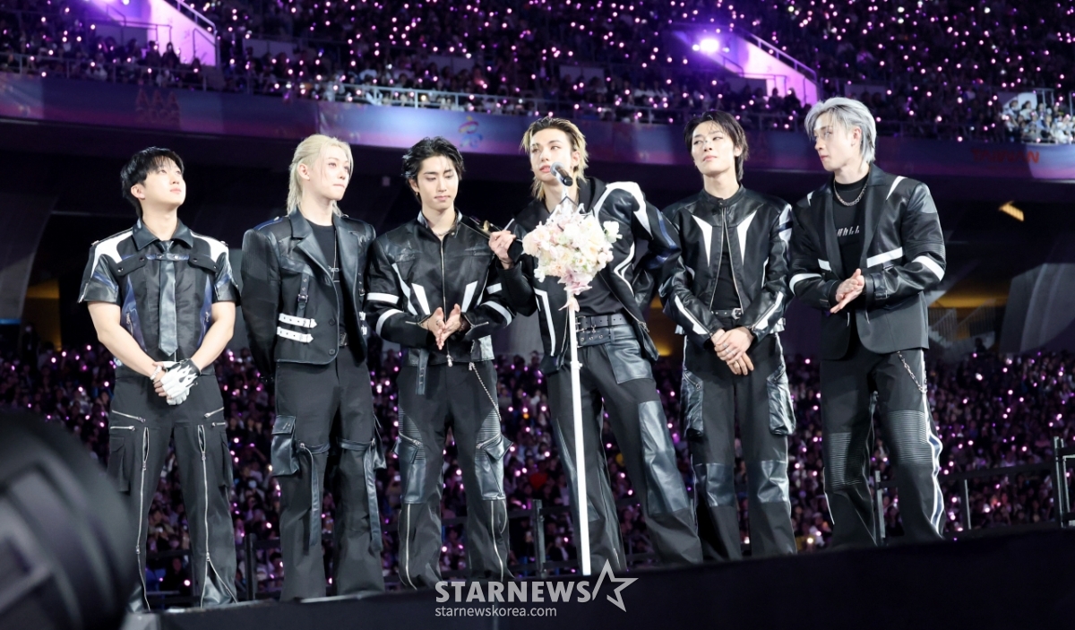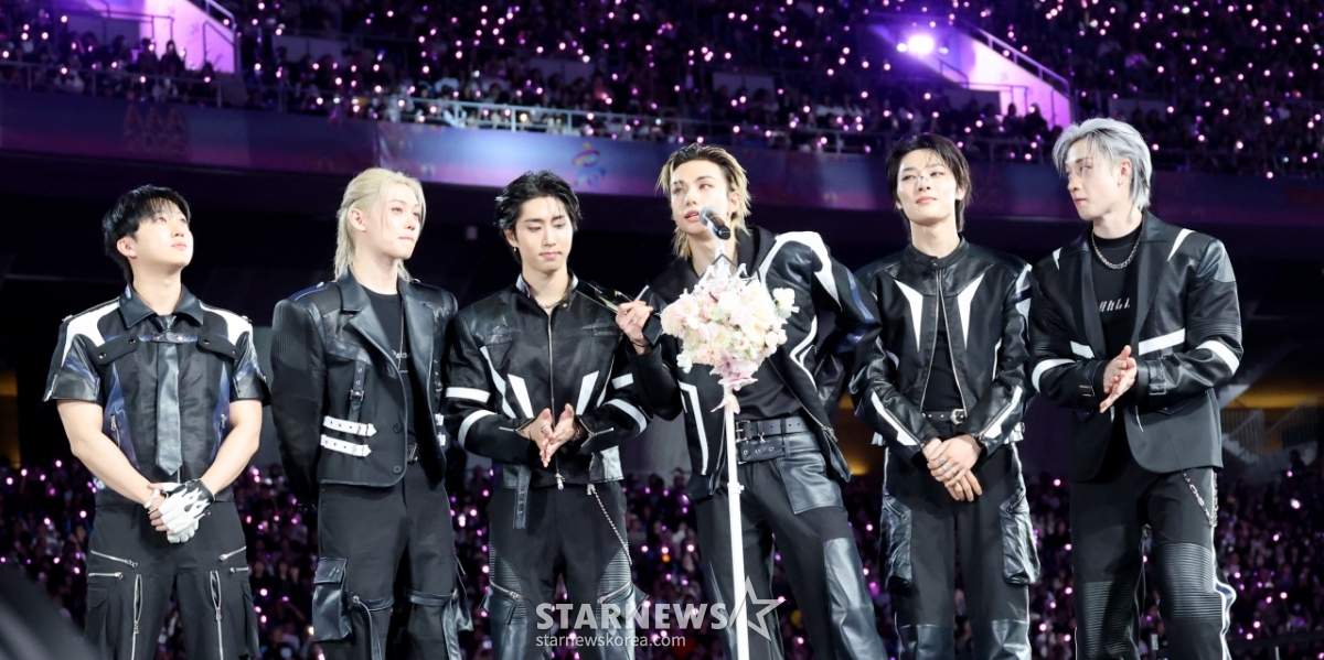 AAA 베스트 아티스트상 스트레이키즈가 6일 대만 가오슝 내셔널 스타디움에서 진행된 스타뉴스 주최 '10주년 아시아 아티스트 어워즈 2025(10th Anniversary Asia Artist Awards 2025, '10주년 AAA 2025')에서 수상소감을 전하고 있다. 12월 6일~7일 양일에 걸쳐 가오슝 내셔널 스타디움에서 펼쳐지는 '10주년 아시아 아티스트 어워즈 2025(10th Anniversary Asia Artist Awards 2025, '10주년 AAA 2025')'와 페스타 'ACON 2025'는 MTN(머니투데이방송)과 위버스(Weverse)를 통해 각각 TV와 온라인 스트리밍으로 생중계 된다. 2025.12.06