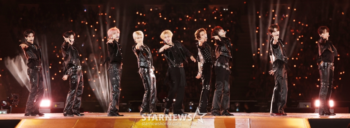 그룹 크래비티가 6일 대만 가오슝 내셔널 스타디움에서 진행된 스타뉴스 주최 '10주년 아시아 아티스트 어워즈 2025(10th Anniversary Asia Artist Awards 2025, '10주년 AAA 2025')에서 멋진 무대를 선보이고 있다.