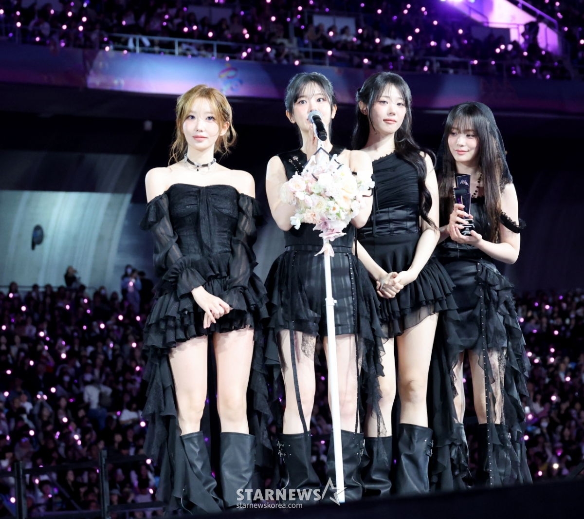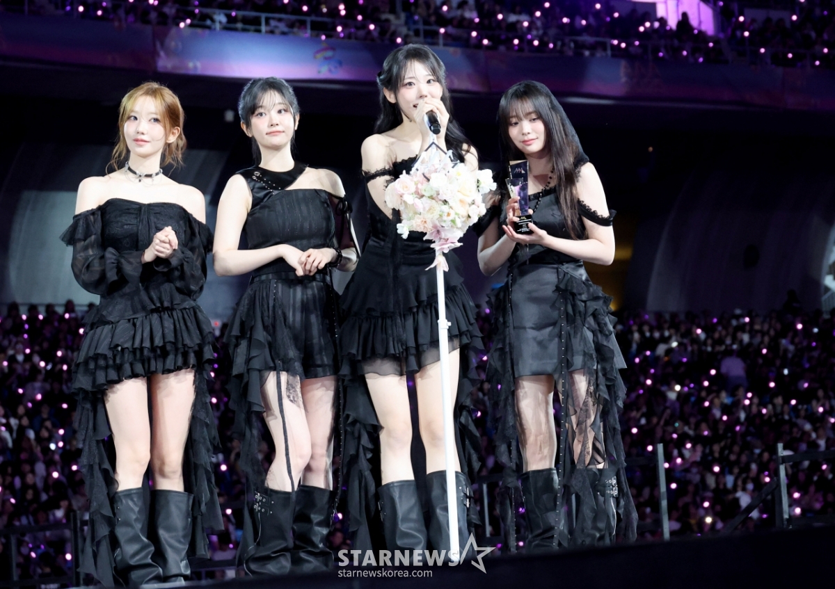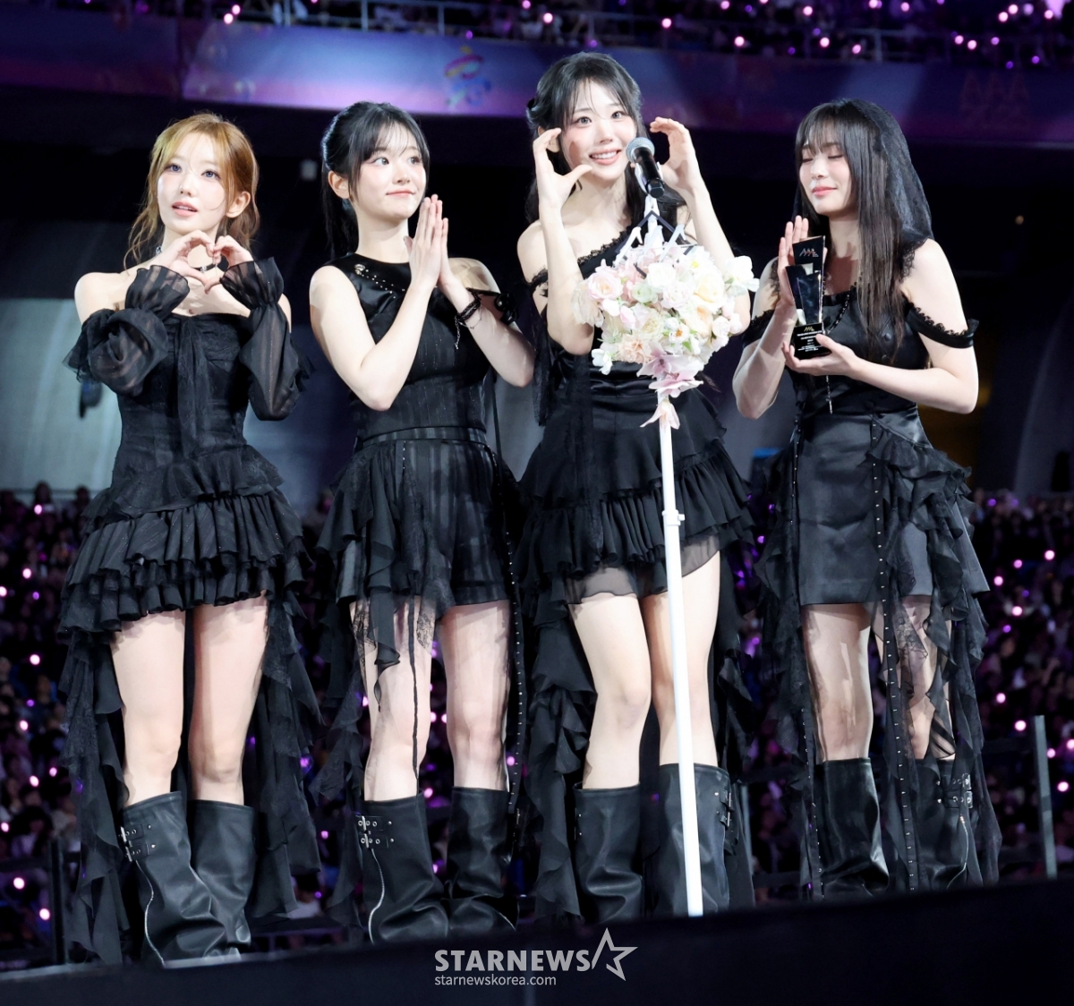 AAA 베스트 밴드 QWER이 6일 대만 가오슝 내셔널 스타디움에서 진행된 스타뉴스 주최 '10주년 아시아 아티스트 어워즈 2025(10th Anniversary Asia Artist Awards 2025, '10주년 AAA 2025')에서 수상소감을 전하고 있다. 12월 6일~7일 양일에 걸쳐 가오슝 내셔널 스타디움에서 펼쳐지는 '10주년 아시아 아티스트 어워즈 2025(10th Anniversary Asia Artist Awards 2025, '10주년 AAA 2025')'와 페스타 'ACON 2025'는 MTN(머니투데이방송)과 위버스(Weverse)를 통해 각각 TV와 온라인 스트리밍으로 생중계 된다. 2025.12.06