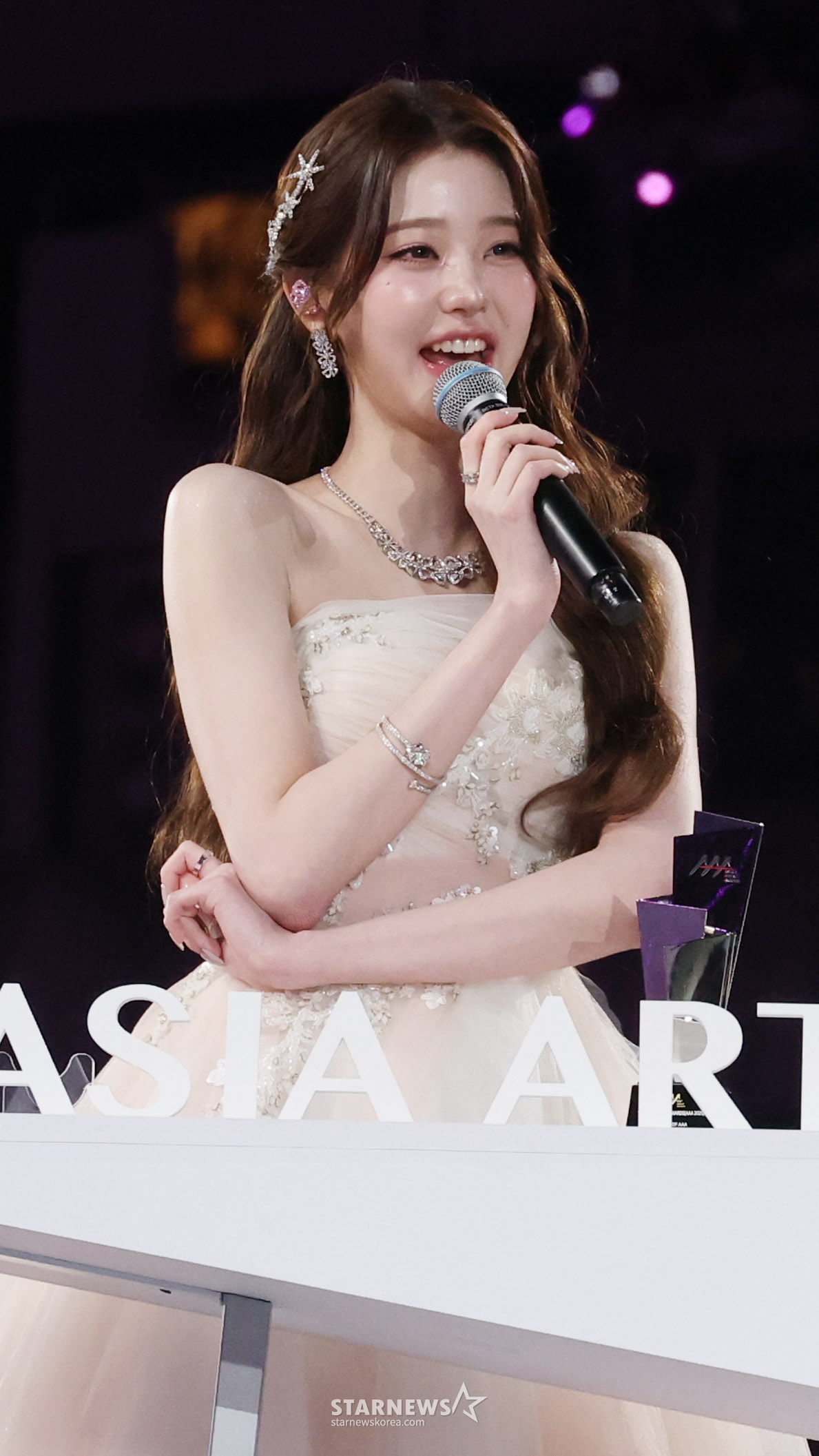 MC 장원영이 6일 가오슝 내셔널 스타디움에서 진행된 스타뉴스 주최 '10주년 아시아 아티스트 어워즈 2025(10th Anniversary Asia Artist Awards 2025, '10주년 AAA 2025')에서 매끄러운 진행을 하고 있다.
