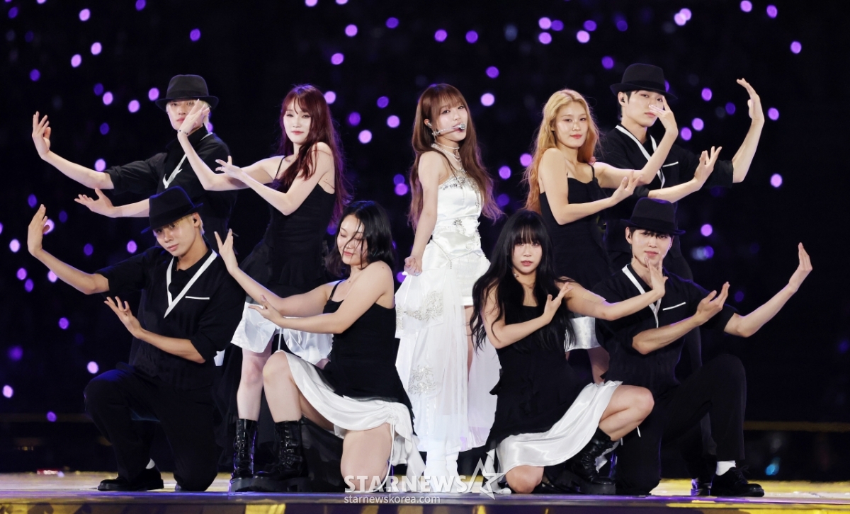 가수 최예나가 6일 대만 가오슝 내셔널 스타디움에서 진행된 스타뉴스 주최 '10주년 아시아 아티스트 어워즈 2025(10th Anniversary Asia Artist Awards 2025, '10주년 AAA 2025')에서 멋진 무대를 선보이고 있다.