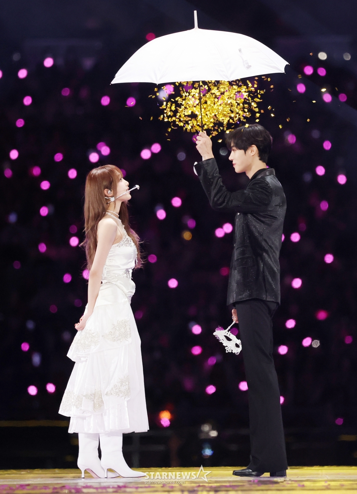 가수 최예나, 배우 추영우가 6일 대만 가오슝 내셔널 스타디움에서 진행된 스타뉴스 주최 '10주년 아시아 아티스트 어워즈 2025(10th Anniversary Asia Artist Awards 2025, '10주년 AAA 2025')에서 멋진 무대를 선보이고 있다.