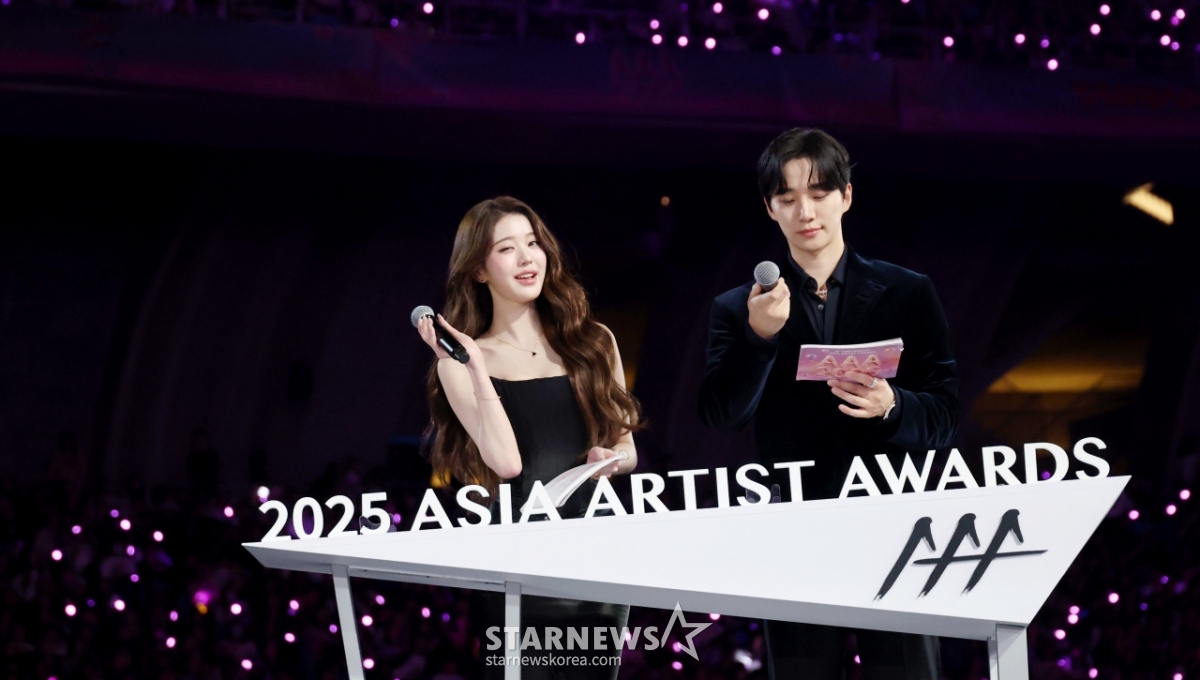 사회를 맡은 장원영과 이준호가 6일 대만 가오슝 내셔널 스타디움에서 진행된 스타뉴스 주최 '10주년 아시아 아티스트 어워즈 2025(10th Anniversary Asia Artist Awards 2025, '10주년 AAA 2025')에서 멋진 케미를 선보이며 시상식을 이끌고 있다. 12월 6일~7일 양일에 걸쳐 가오슝 내셔널 스타디움에서 펼쳐지는 '10주년 아시아 아티스트 어워즈 2025(10th Anniversary Asia Artist Awards 2025, '10주년 AAA 2025')'와 페스타 'ACON 2025'는 MTN(머니투데이방송)과 위버스(Weverse)를 통해 각각 TV와 온라인 스트리밍으로 생중계 된다. 2025.12.06