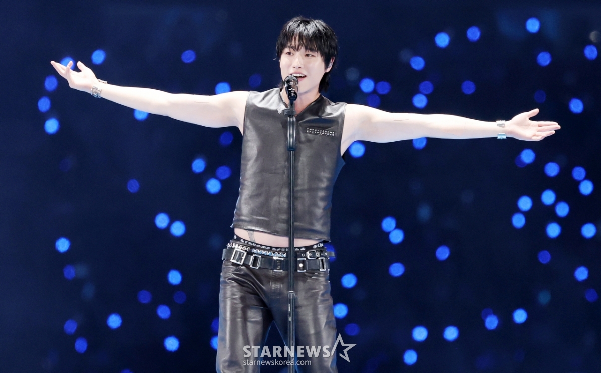 가수 우즈가 6일 대만 가오슝 내셔널 스타디움에서 진행된 스타뉴스 주최 '10주년 아시아 아티스트 어워즈 2025(10th Anniversary Asia Artist Awards 2025, '10주년 AAA 2025')에서 멋진 무대를 선보이고 있다.