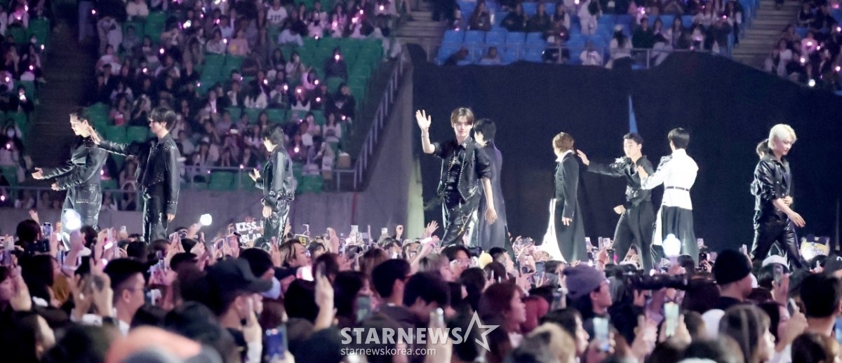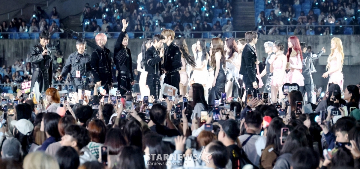 6일 대만 가오슝 내셔널 스타디움에서 진행된 스타뉴스 주최 '10주년 아시아 아티스트 어워즈 2025(10th Anniversary Asia Artist Awards 2025, '10주년 AAA 2025')마무리되며 수상자들이 팬들과 작별인사를 하고 있다.