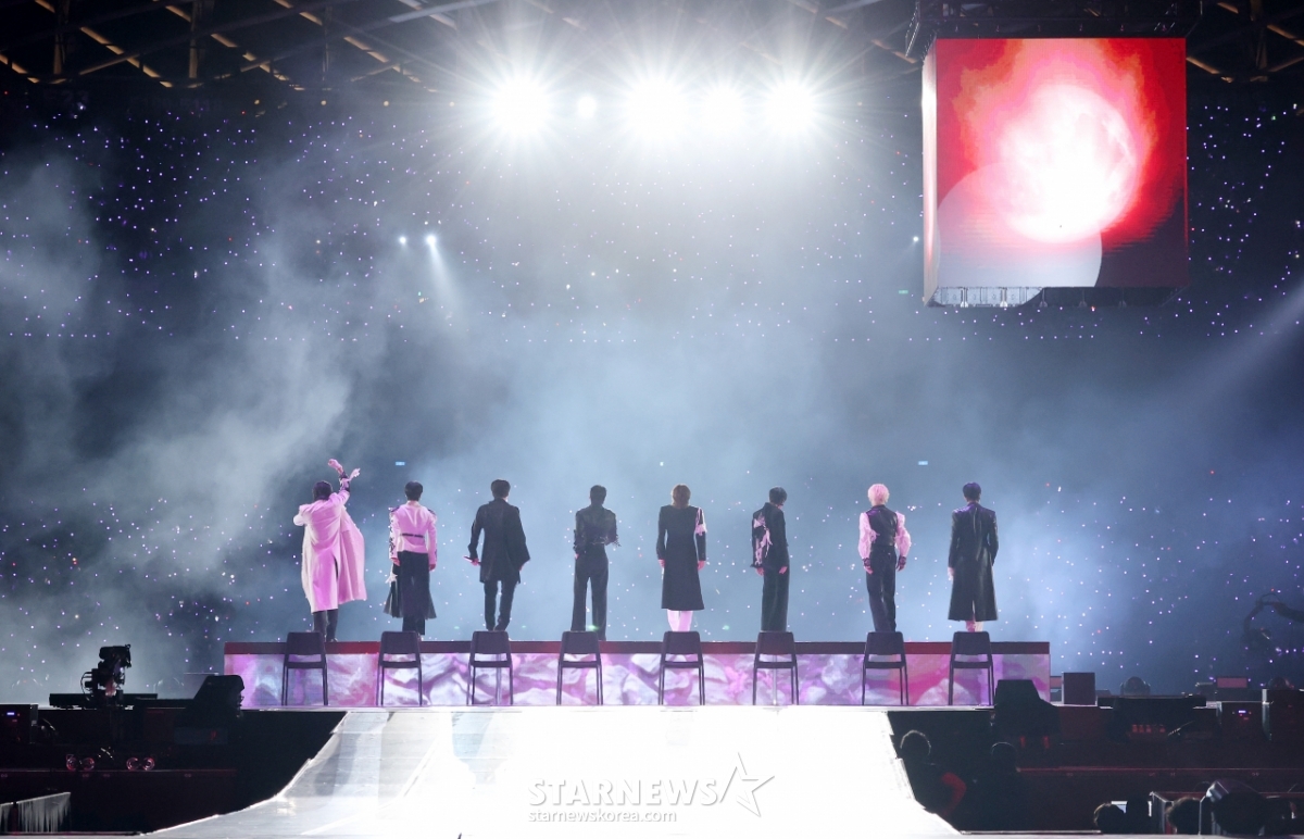 그룹 에이티즈가 6일 대만 가오슝 내셔널 스타디움에서 진행된 스타뉴스 주최 '10주년 아시아 아티스트 어워즈 2025(10th Anniversary Asia Artist Awards 2025, '10주년 AAA 2025')에서 멋진 무대를 선보이고 있다.