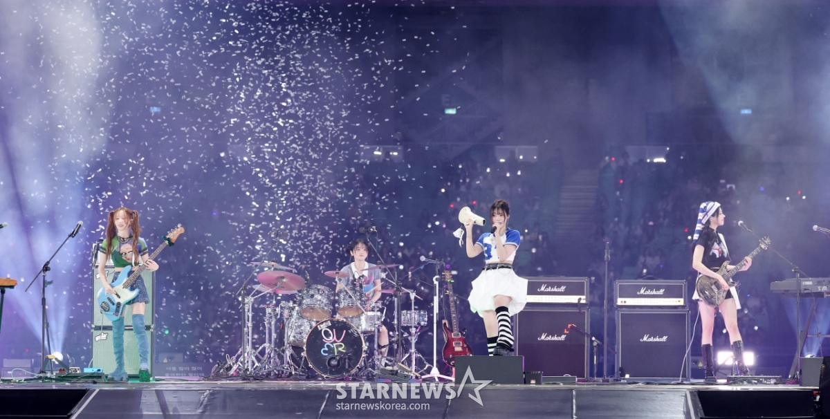 밴드 QWER이 7일 가오슝 내셔널 스타디움에서 진행된 스타뉴스 주최 '10주년 아시아 아티스트 어워즈 2025(10th Anniversary Asia Artist Awards 2025, '10주년 AAA 2025')를 기념하는 'ACON 2025'에서 멋진 무대를 선보이고 있다.