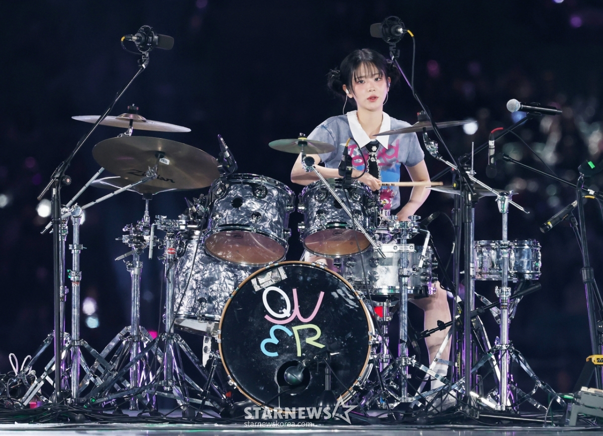밴드 QWER 쵸단이 7일 가오슝 내셔널 스타디움에서 진행된 스타뉴스 주최 '10주년 아시아 아티스트 어워즈 2025(10th Anniversary Asia Artist Awards 2025, '10주년 AAA 2025')를 기념하는 'ACON 2025'에서 멋진 무대를 선보이고 있다.